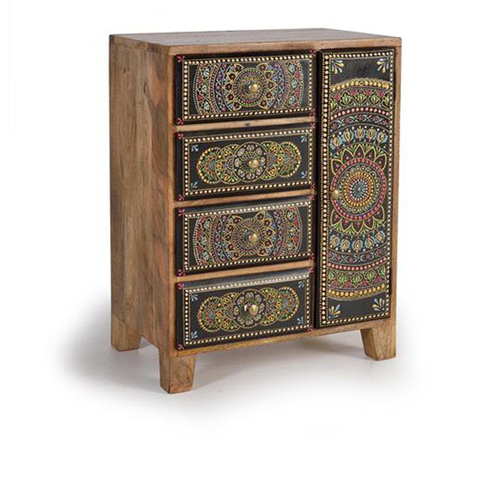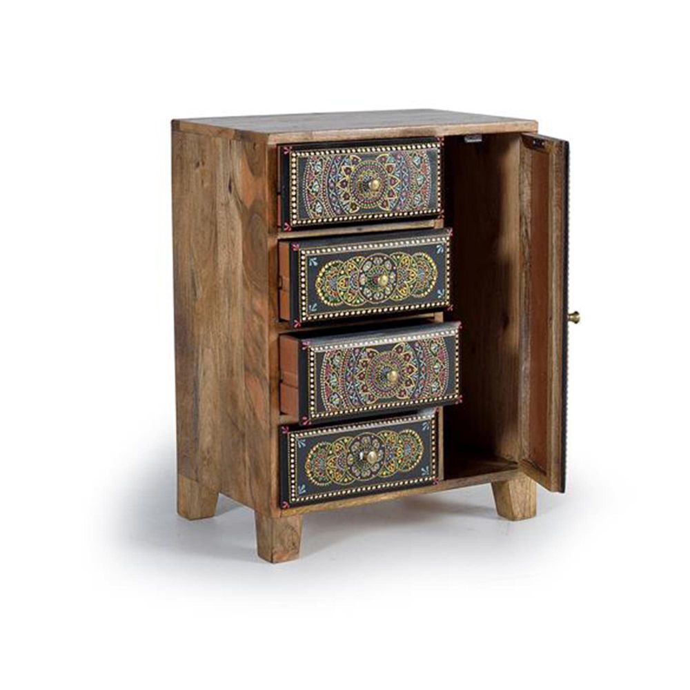 Item Code: 1374 4 Drawer, 1 Door Telephone Box Made Of Mango Wood, With Hand-Painted Details.