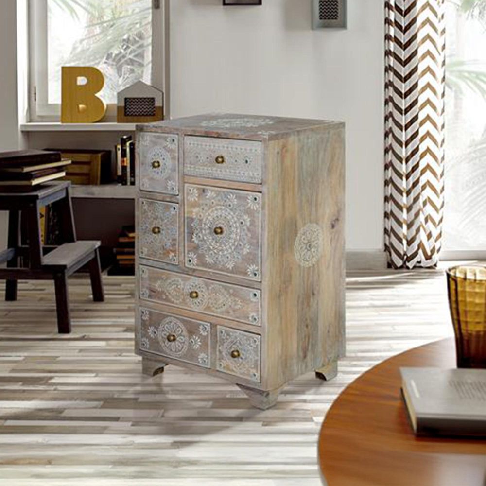 Item Code: 6792 7-Drawer Cabinet Made Of Mango Wood, With Hand-Painted Details.