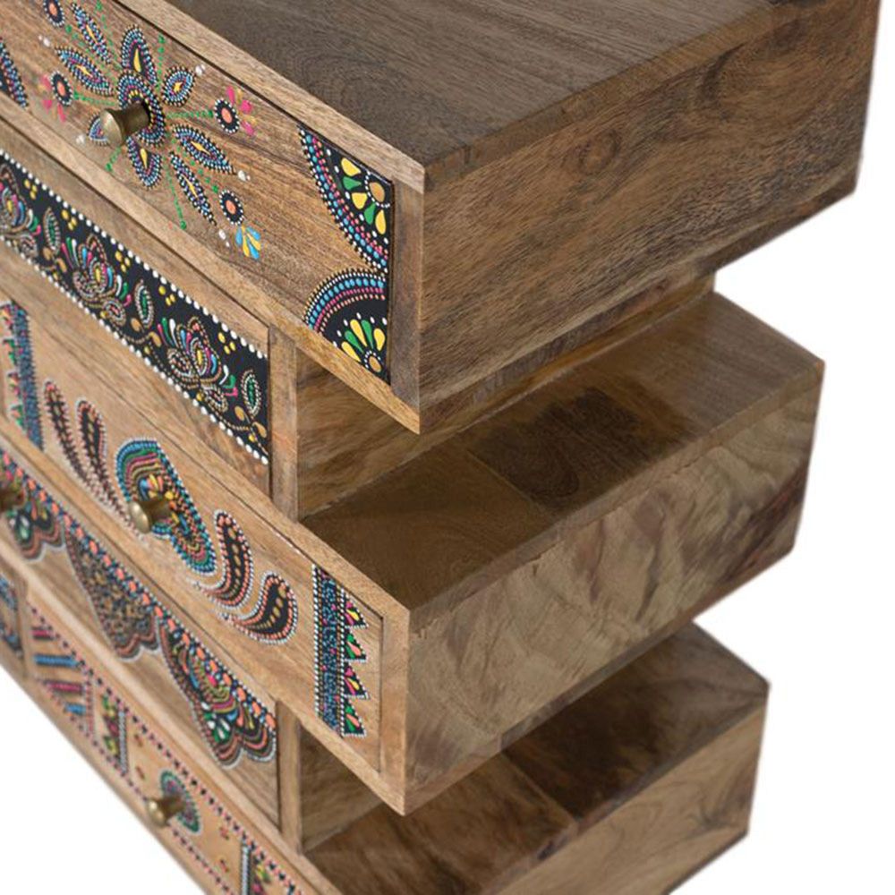 Item Code: 1764 Chest of drawers made of solid mango wood, it has 8 drawers, each with fronts decorated with hand-painted details. The unique and handcrafted designs on the drawer fronts include varied motifs that add an artistic and cultural touch to the piece. The chest of drawers stands out as a functional piece of art, ideal for beautifying any room.