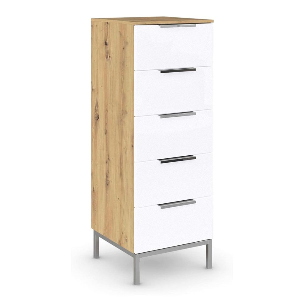 Rauch Flipp 5 Drawer Tall Chest with Metal Base - Artisan Oak and Alpine White