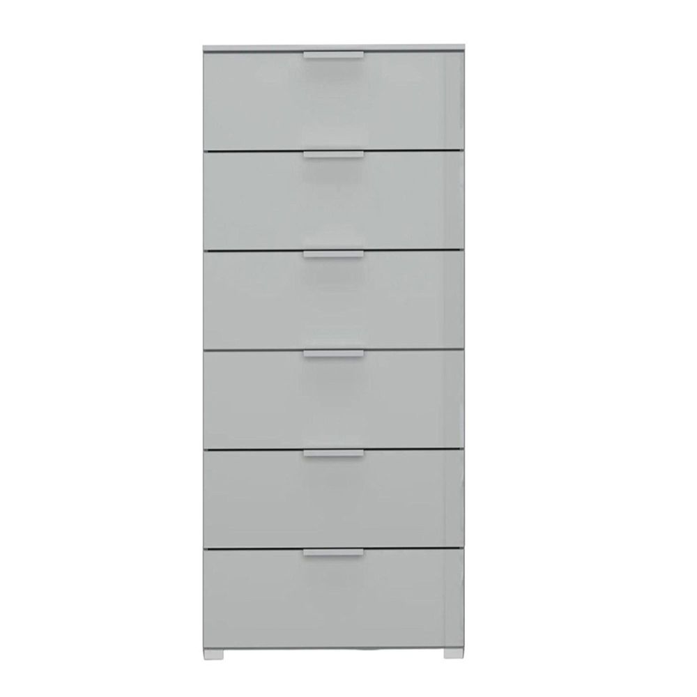 Rauch Skat Meridian 6 Drawer Tall Chest - Silk Grey and Silk Grey Glass