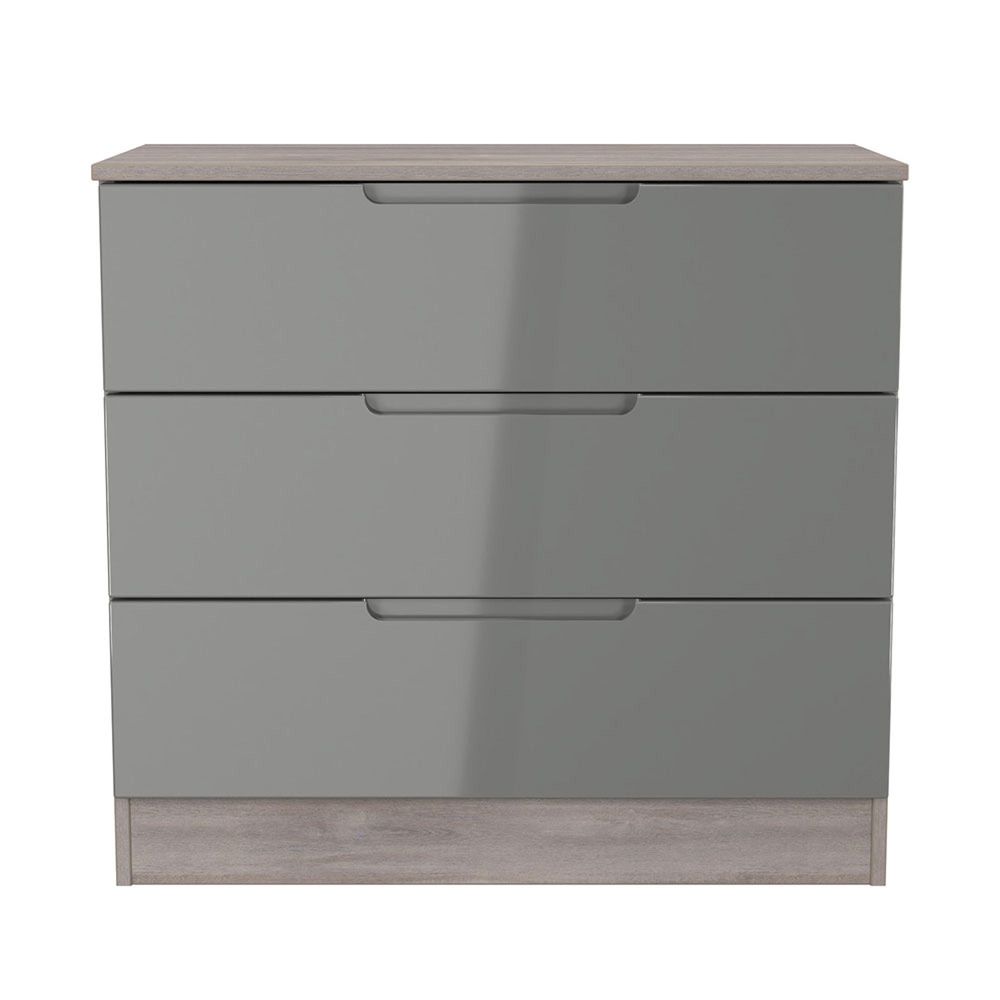 Milan Grey Gloss and Grey Oak 3 Drawer Small Chest