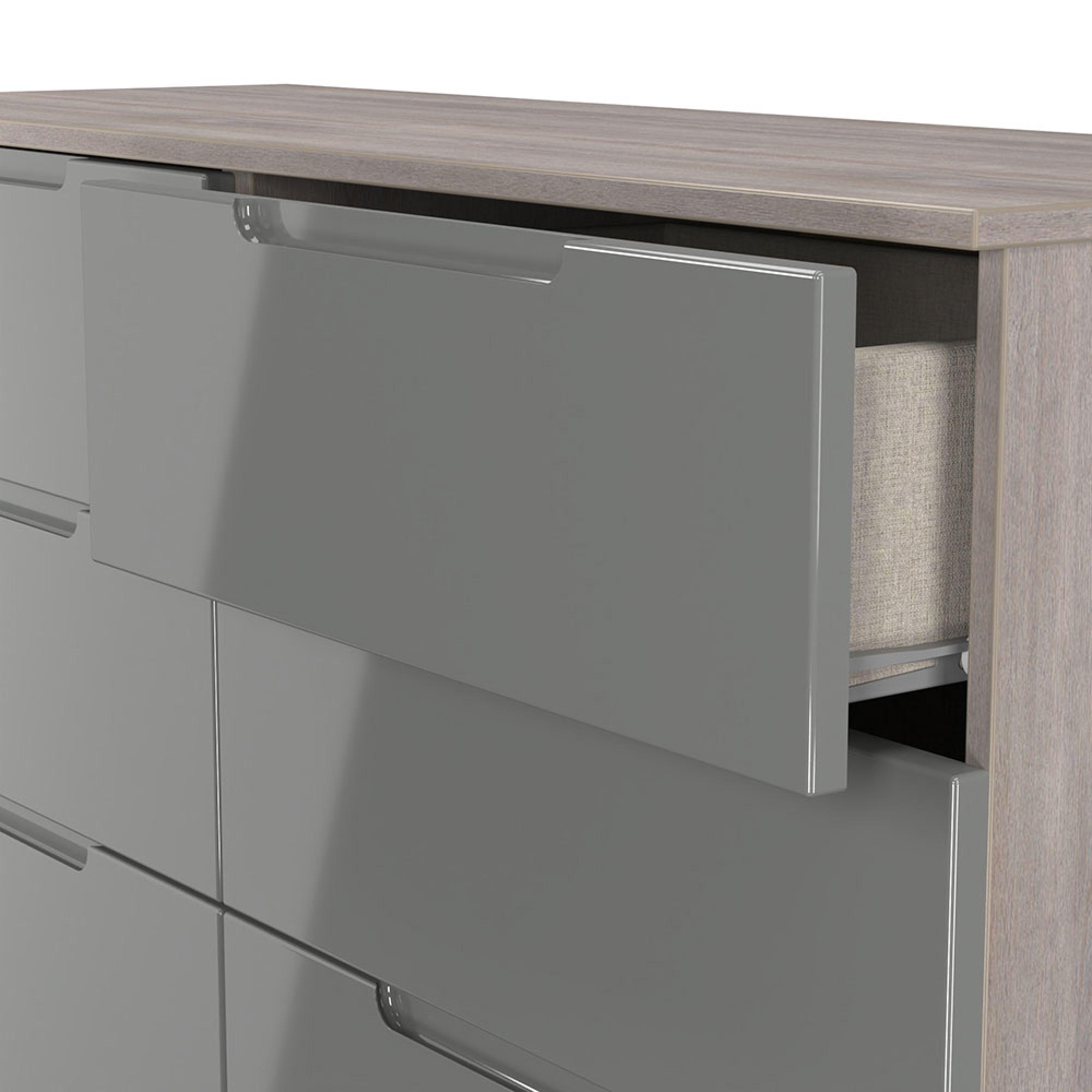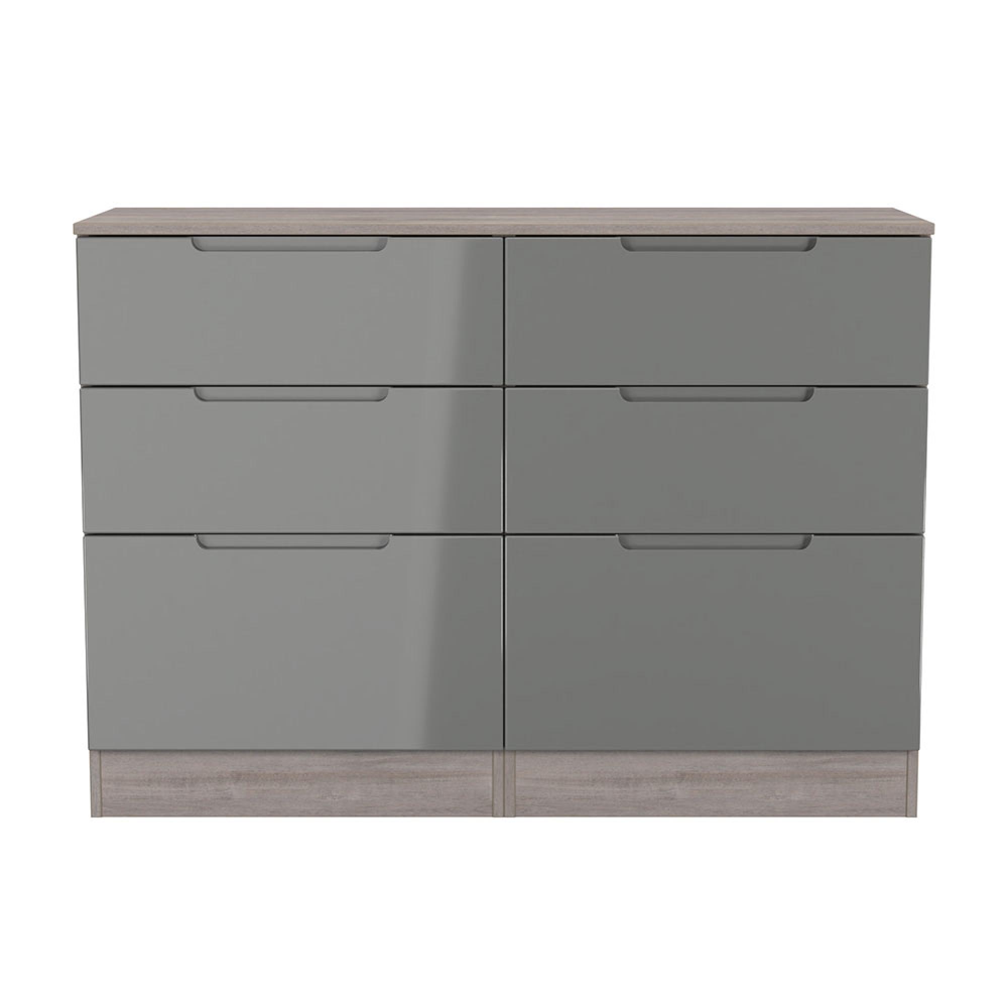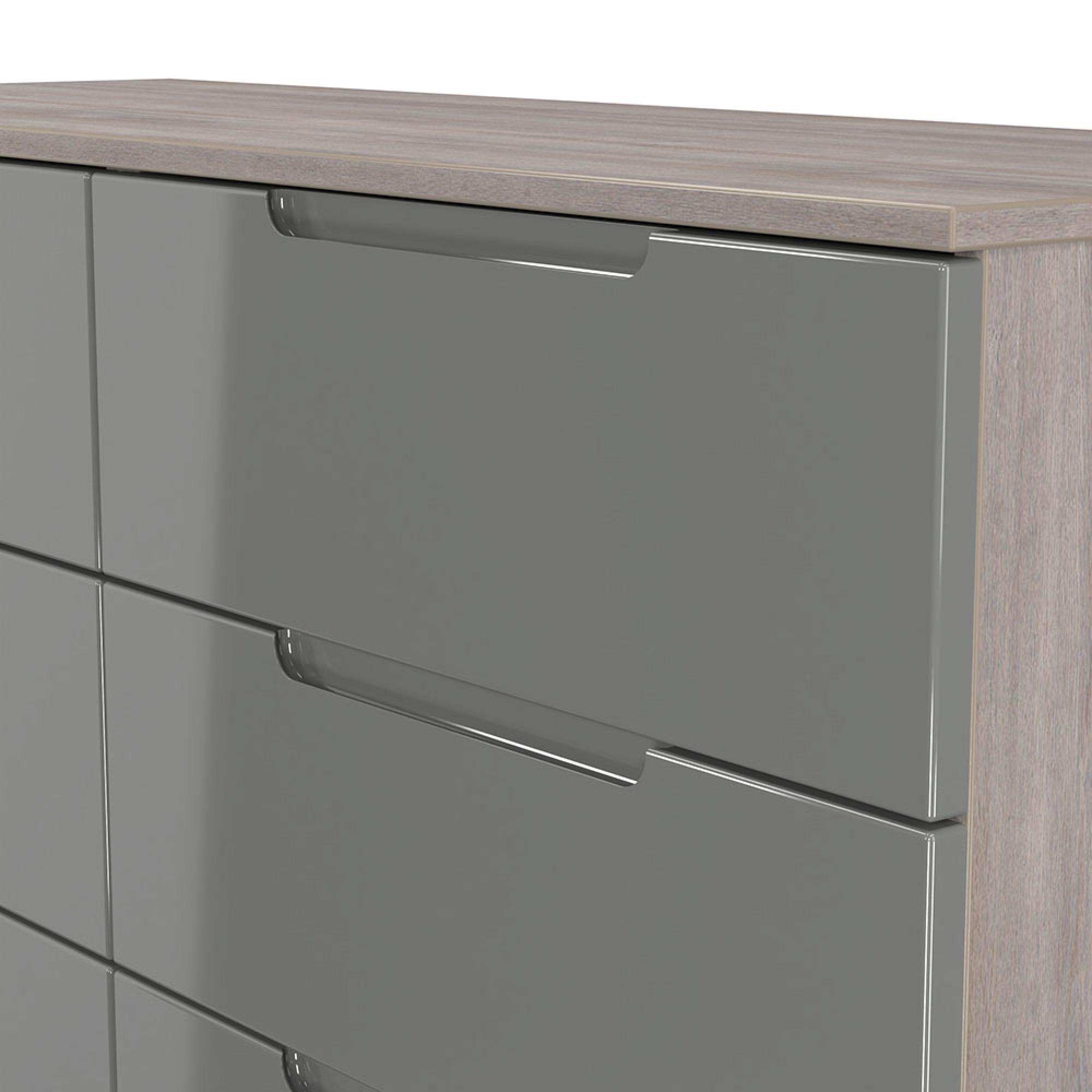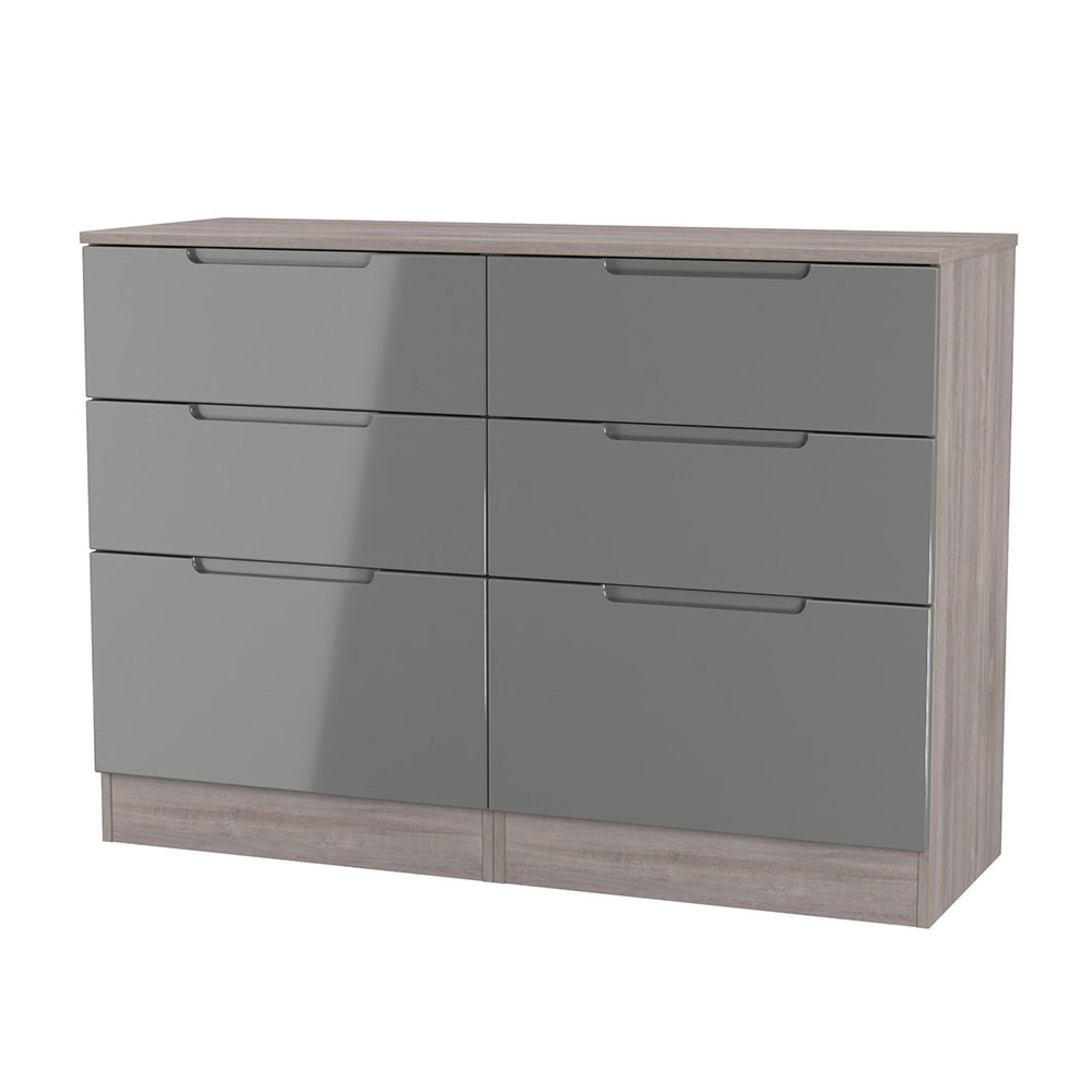 Milan Grey Gloss and Grey Oak 6 Drawer Midi Chest