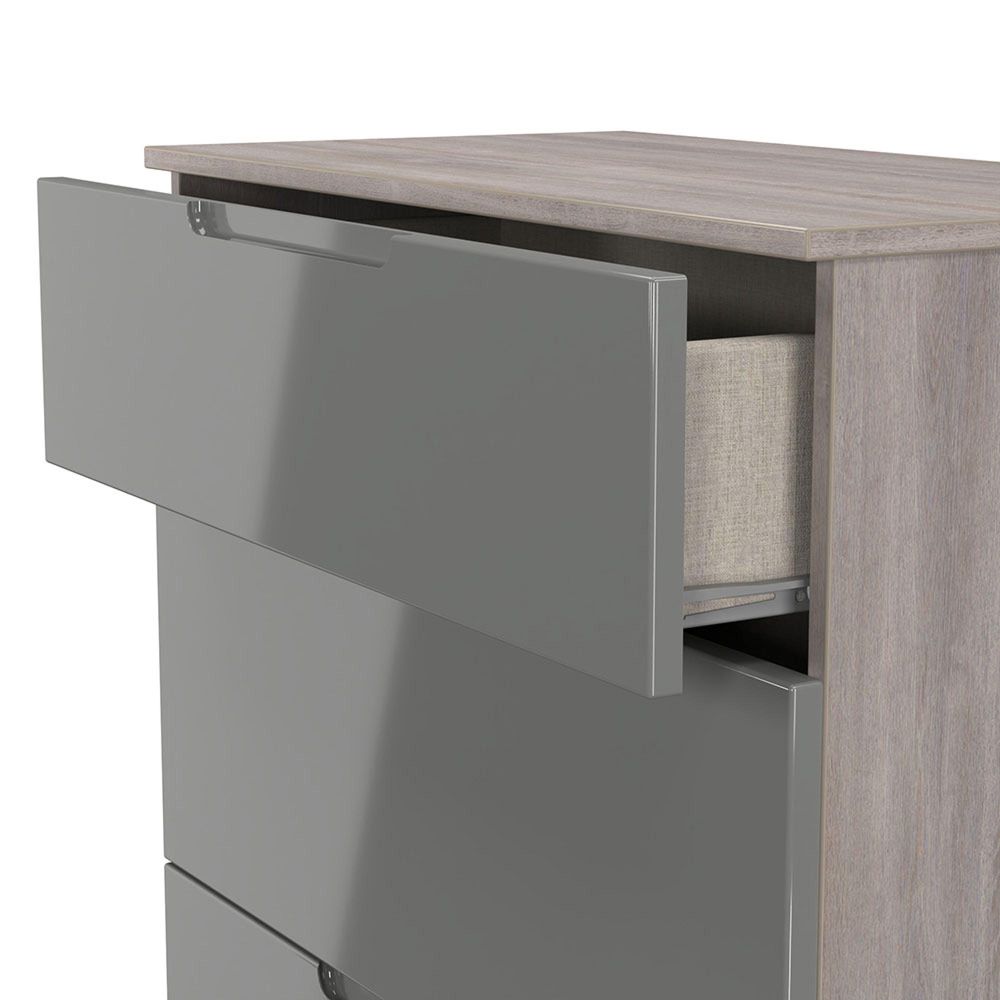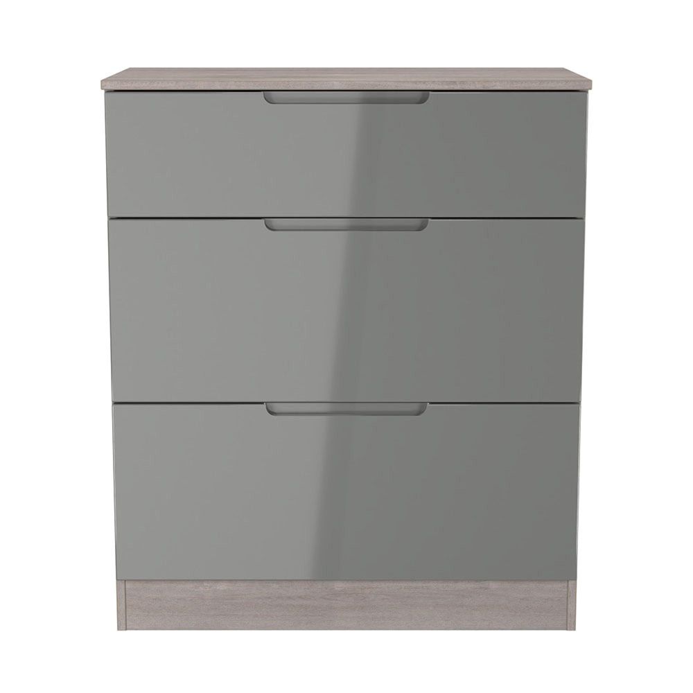 Milan Grey Gloss and Grey Oak 3 Drawer Deep Chest