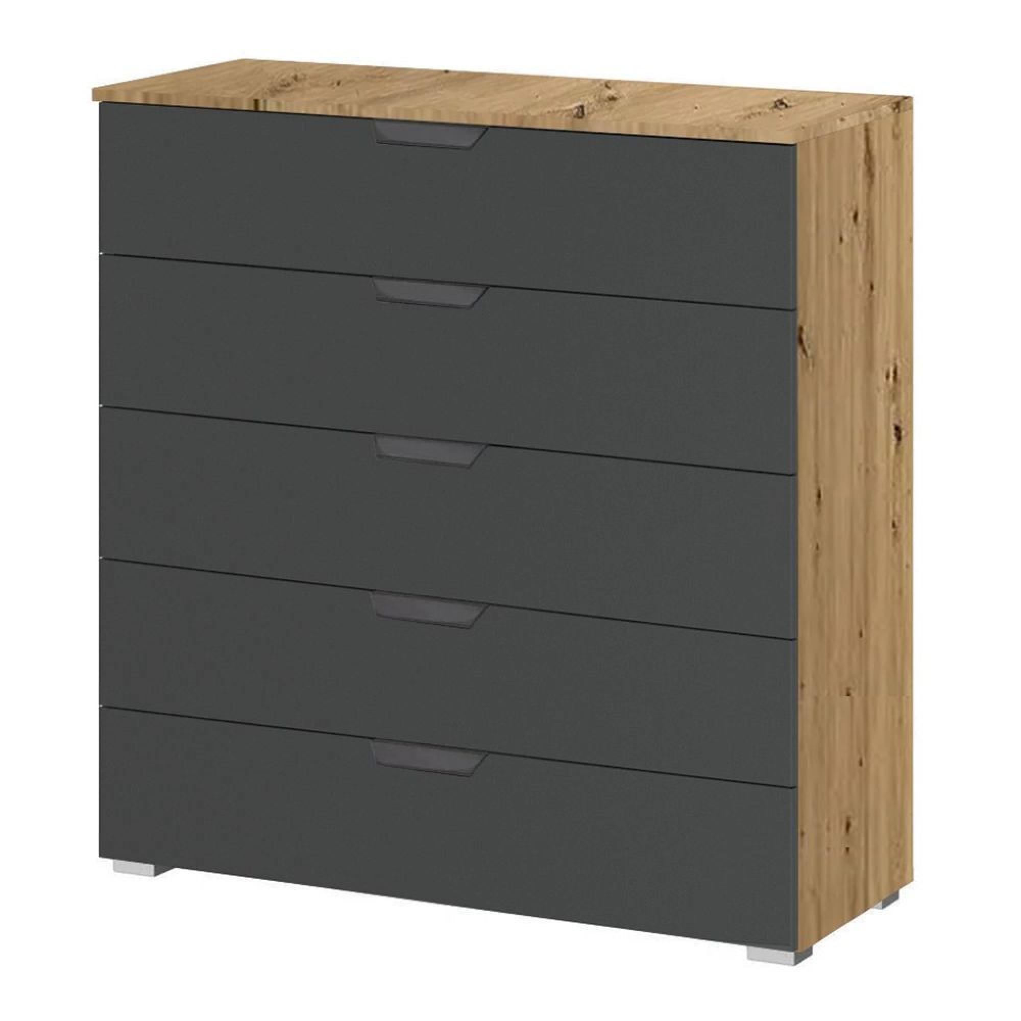 Aditio Wide Chest - 5 Drawer - Artisan Oak & Metallic Dark Grey
