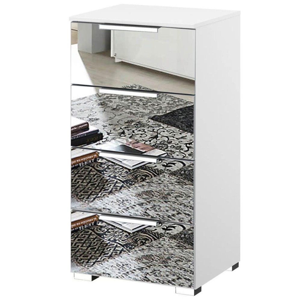 Rauch Miramar 4 Drawer Mirrored Narrow Chest - Alpine White
