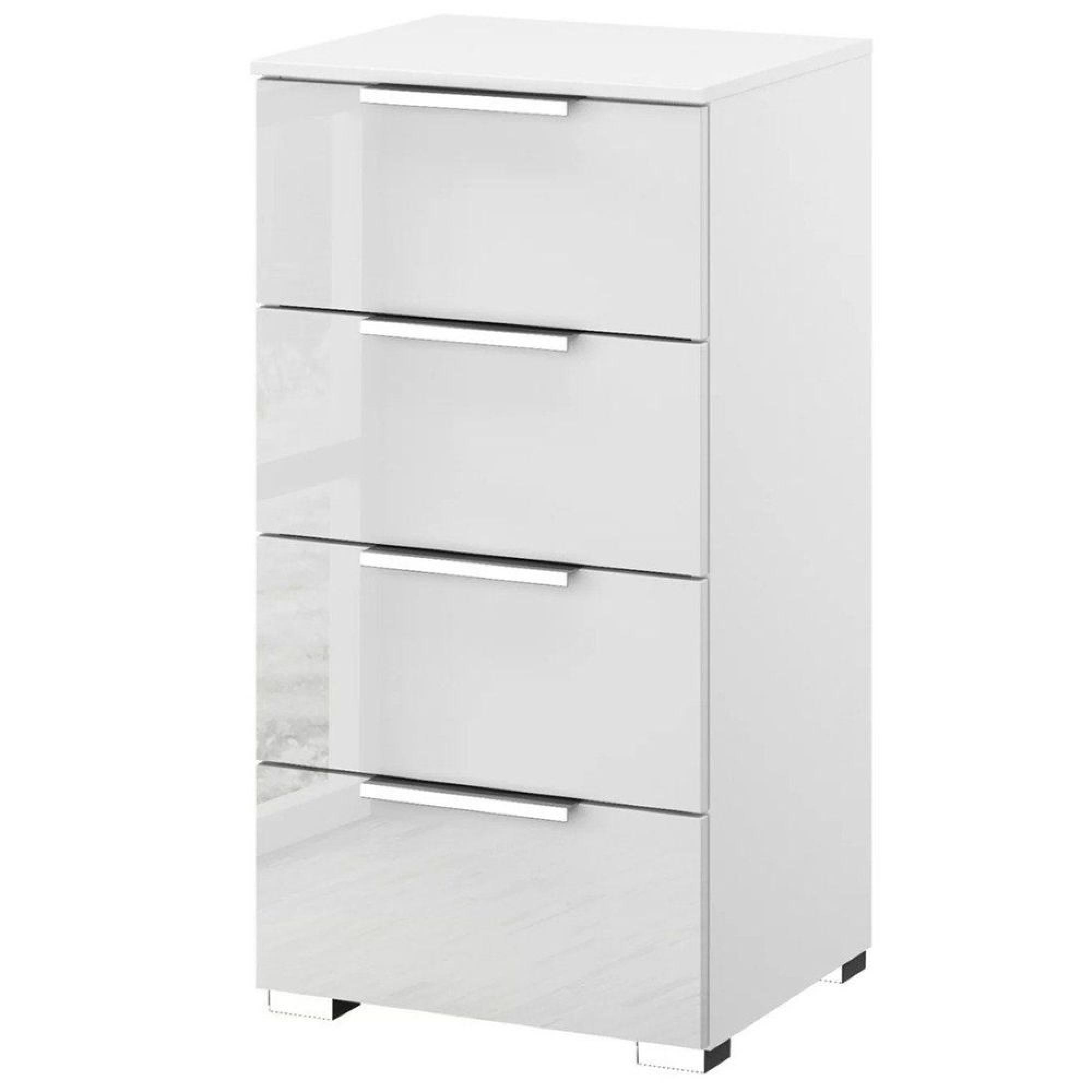 Rauch Miramar 4 Drawer Narrow Chest - Alpine White and Crystal White Glass