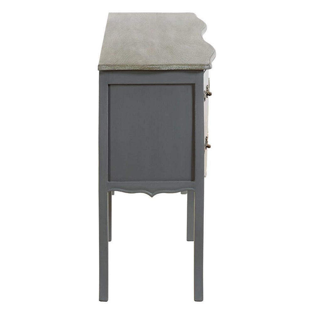 Item Code: 5502151 The Loire double chest makes a grand impression with its dual wood tones and warmly coloured metalwork.The cabinet of this French-inspired chest is made from natural bayur wood, and has a muted grey finish that contrasts with the richly grained top section. Four drawers with ornate baroque handles are integrated into the cabinet.