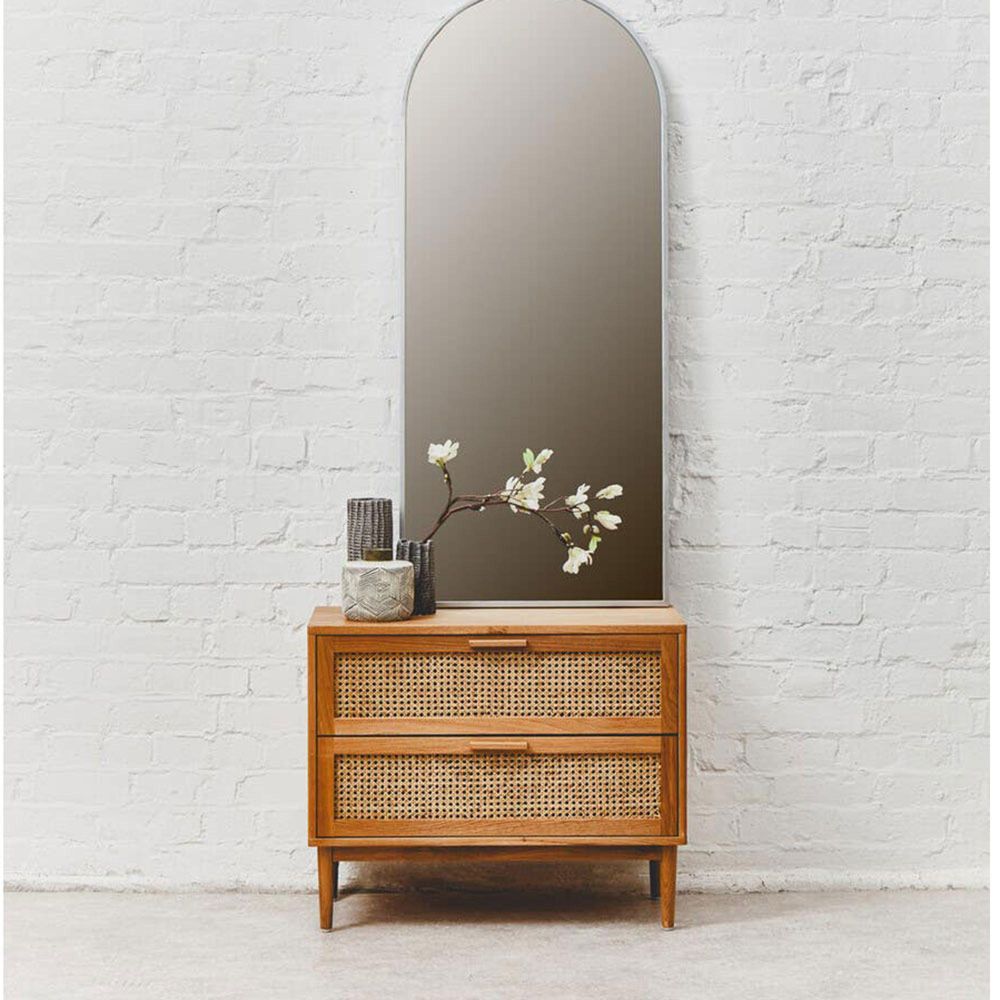 Item Code: 5528691 The Lyon two drawer chest evokes a nostalgic charm with its warm oak wood structure and rattan drawer fronts.The chest has a mid century modern style that pairs well with boho chic, retro and scandi interiors. It has a clean structure with two drawers, each with a rattan front. It is great for keeping home items organised while adding style to the space.