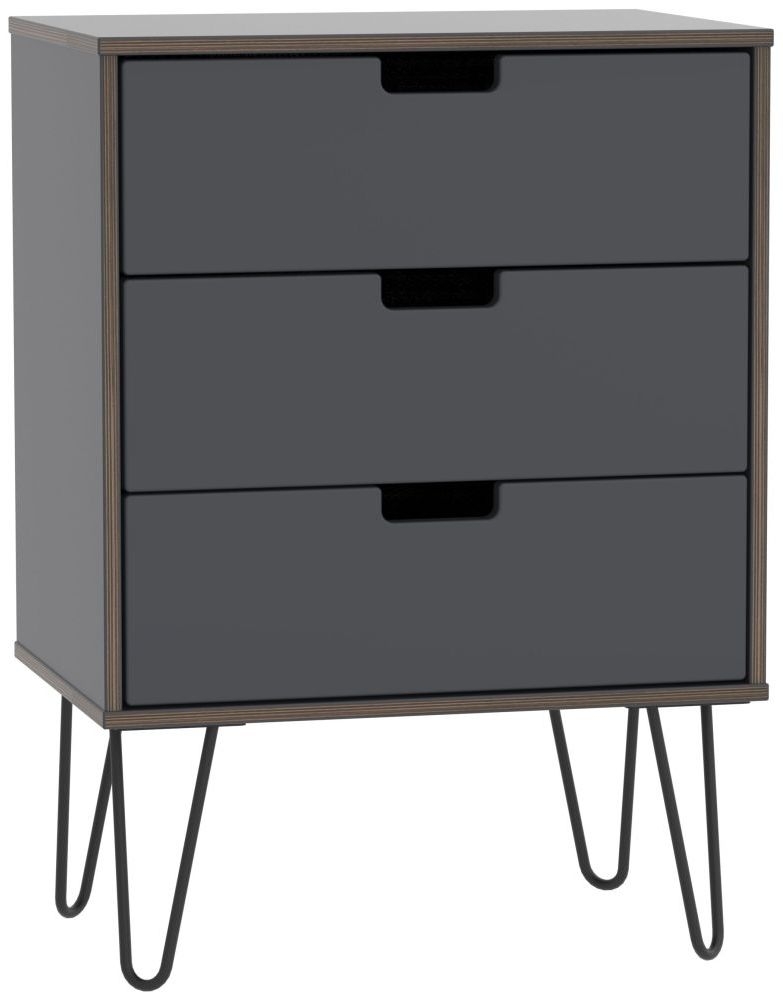 Shanghai Graphite 3 Drawer Small Chest with Hairpin Legs