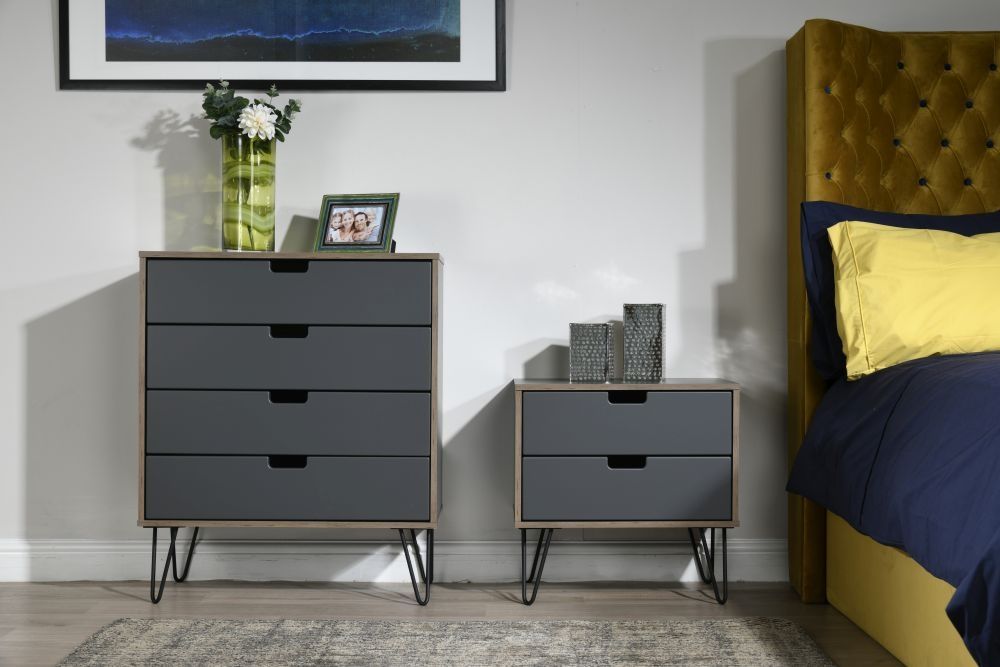 Shanghai Graphite 4 Drawer Chest with Hairpin Legs