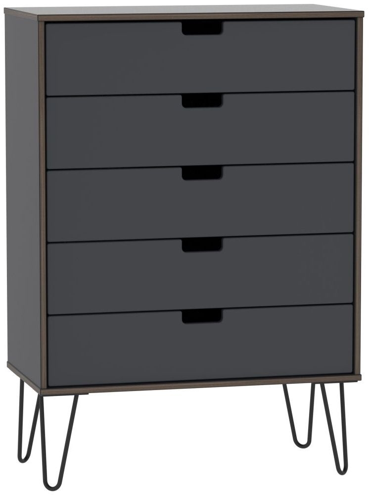 Shanghai Graphite 5 Drawer Chest with Hairpin Legs