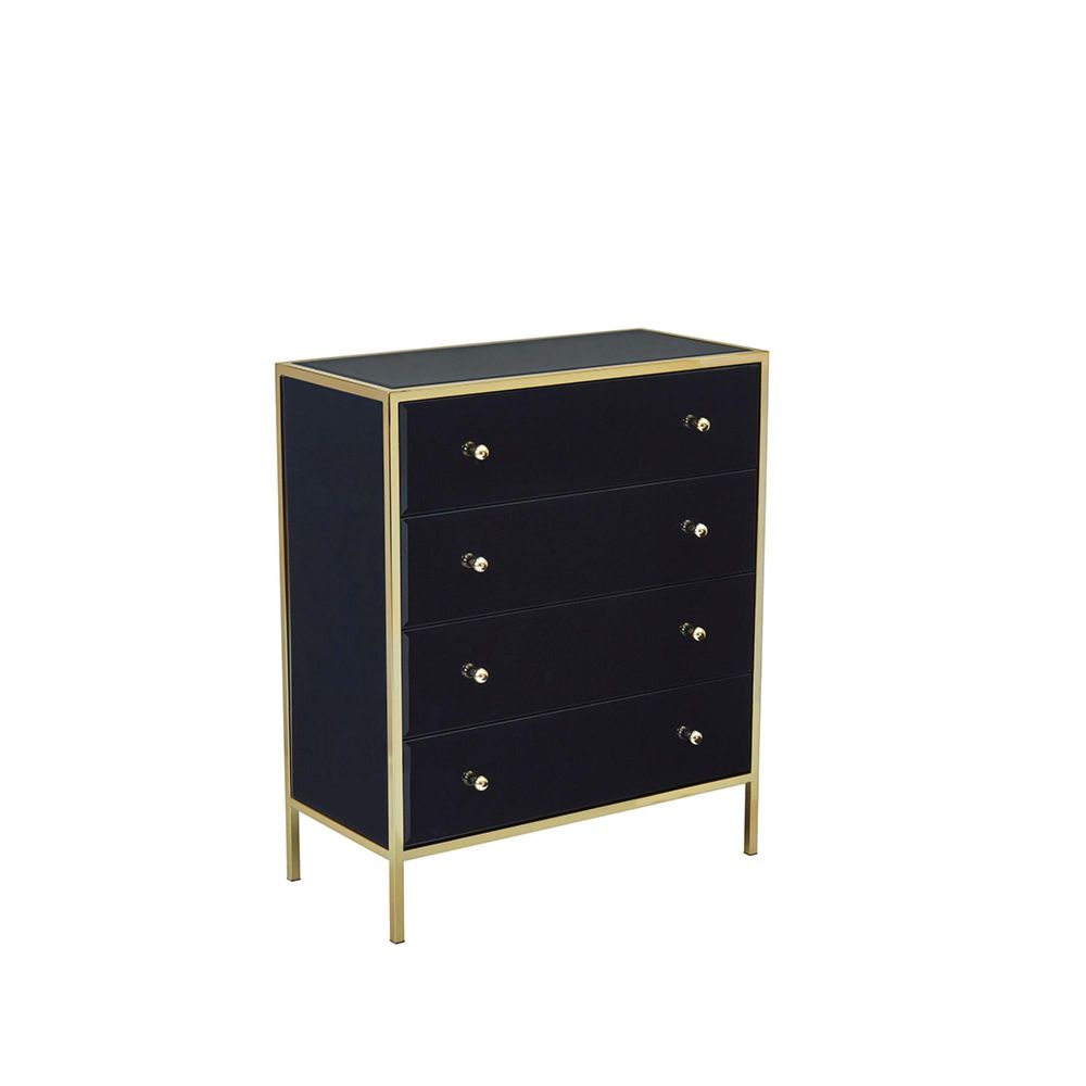 Fenwick Chest - 4 Drawer - Black Glass - Gold Trim