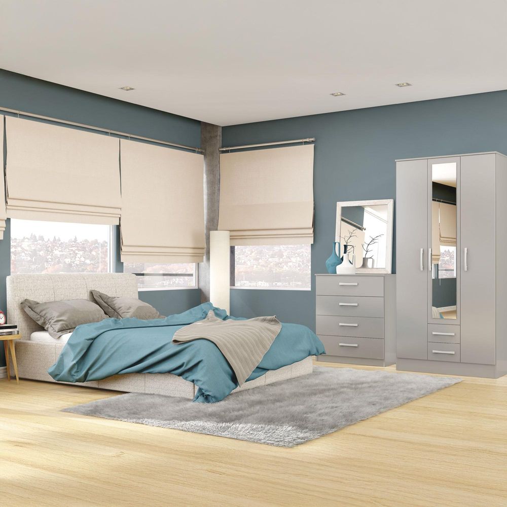 Item Code: LYNCH4GRY Modern and sleek, the Lynx 4 drawer chest combines a high-gloss finish with bold silver detailing to make any space feel contemporary.Constructed from MDP (multiple density particleboard), this high-quality bedside is available in a choice of four high-gloss lacquer colour options: white & grey, black, white, or black & white, or alternatively there are an additional colour option combining high-gloss lacquered panels with walnut paper foil: walnut & blackThe top panel of this chest can support up to 8 kg of weight and each drawer can support up to 5 kg.