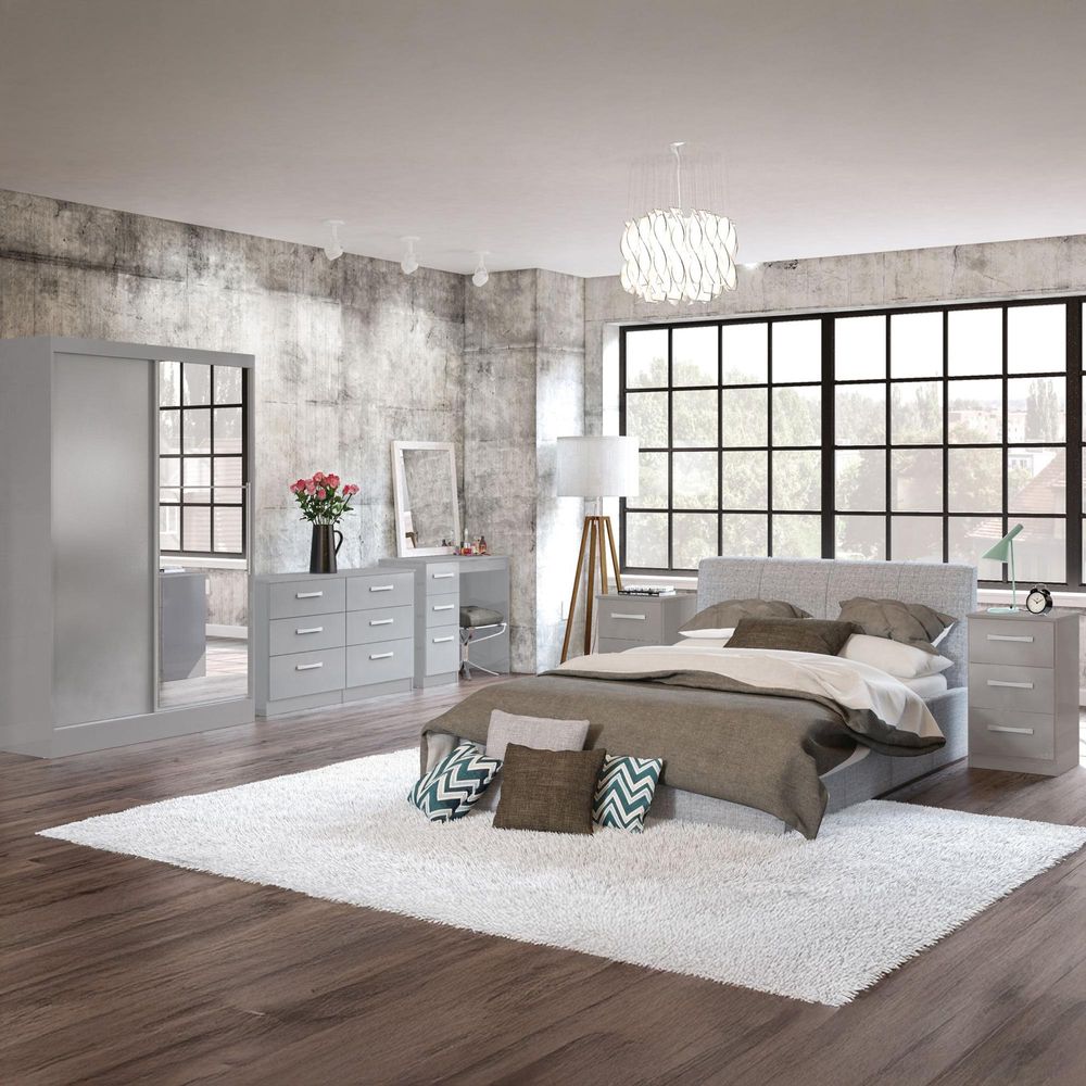 Item Code: LYNCH6GRY Modern and sleek, the Lynx 6 drawer chest combines a high-gloss finish with bold silver detailing to make any space feel contemporary.Constructed from MDP (multiple density particleboard), this high-quality bedside is available in a choice of four high-gloss lacquer colour options: white & grey, black, white, or black & white, or alternatively there are an additional colour option combining high-gloss lacquered panels with walnut paper foil: walnut & black.The top panel of this chest can support up to 15 kg of weight and the drawers can support up to 5 kg.