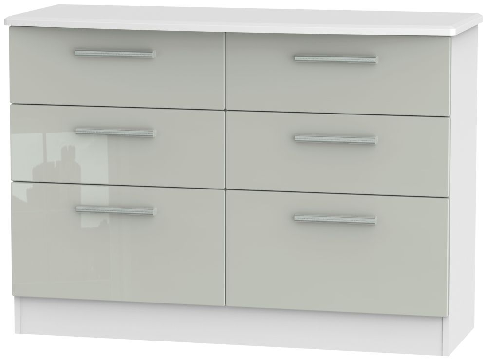 Knightsbridge Cashmere Gloss and White 6 Drawer Midi Chest