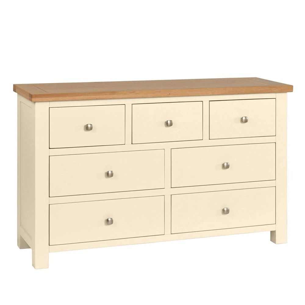 The Lundy Ivory Painted 3+4 Drawer Chest is a beautifully hand-crafted piece that combines timeless design with practical storage. Made from solid oak, it reflects the natural warmth of wooden furniture while offering a modern, sophisticated look. Finished in a soft ivory tone with a clean light wax, it balances elegance with durability, making it a versatile addition to both contemporary and classic interiors.