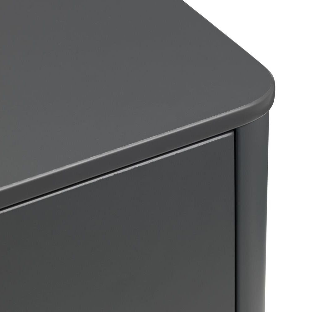 Item Code: CHL004 The Chloe Bedroom collection has a modern, retro style finished in a storm grey lacquer with satin black wooden legs and handles. The corners are rounded for a softer look, creating perfect balance between style and functionality. Featuring 6 large drawers, this chest is perfect for neatly storing your clothes.