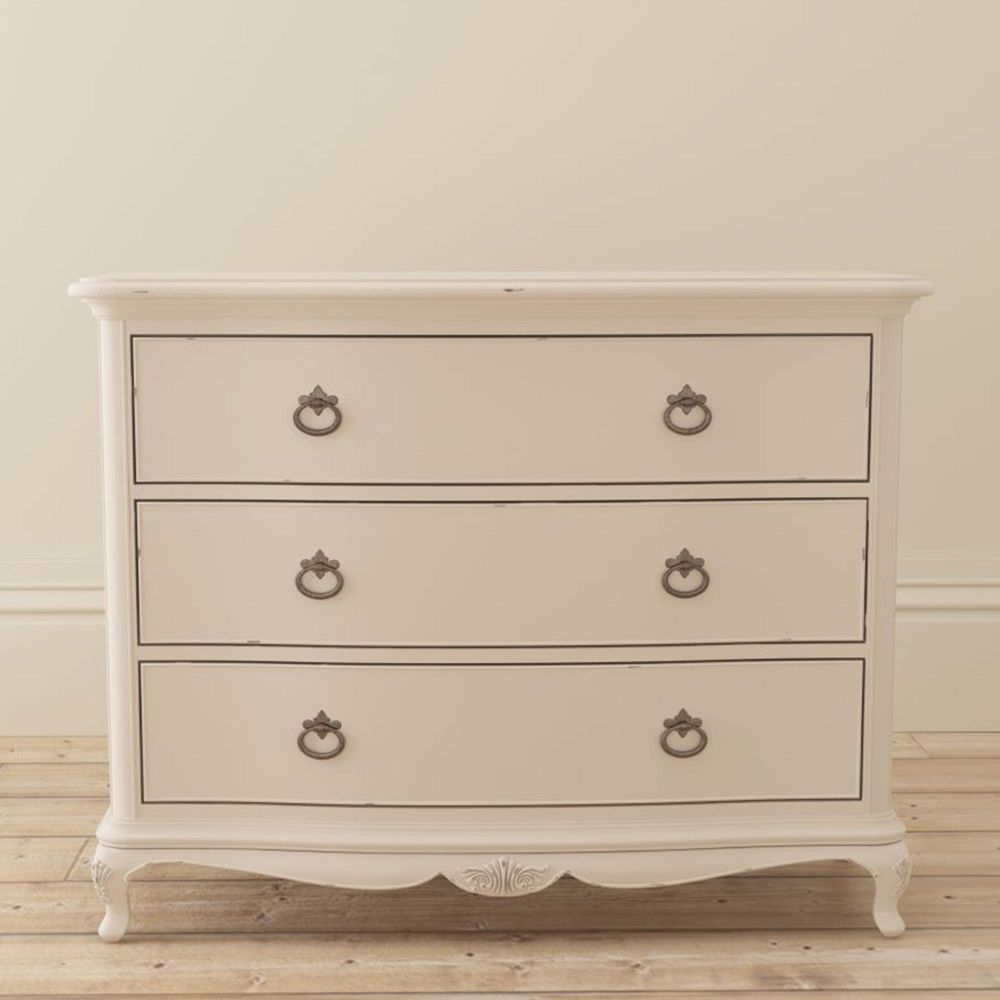 The Willis and Gambier Ivory 3 Drawer Chest is a timeless piece that combines classic French styling with everyday practicality. Crafted with precision and care, it features graceful curves, elegant cabriole legs, and delicate carved detailing that give it an effortlessly refined appearance. Its soft ivory painted finish with gently distressed edges creates a warm, antique-inspired look that suits both traditional and modern bedrooms.