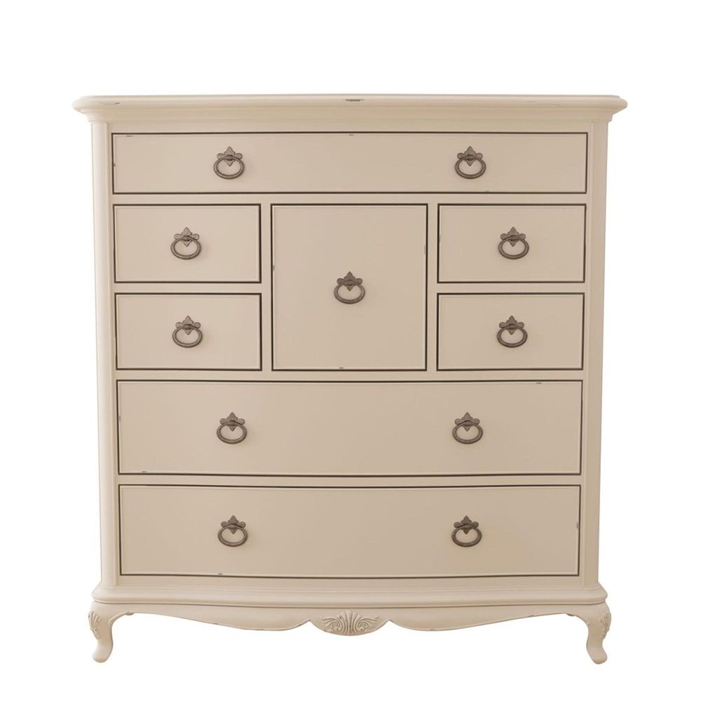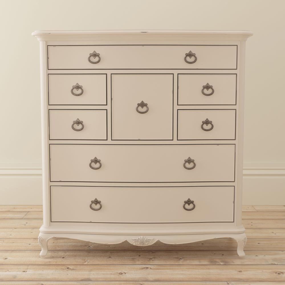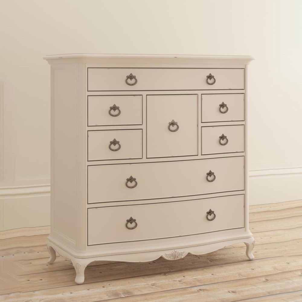 The Willis and Gambier Ivory 8 Drawer Chest is a beautifully designed statement piece that combines classic French styling with generous storage capacity. Perfect for larger bedrooms, this elegant chest captures the charm of traditional craftsmanship through its graceful curves, cabriole legs, and hand-carved detailing. The soft ivory painted finish with gently distressed edges adds warmth and character, giving it an inviting, antique-inspired appeal.