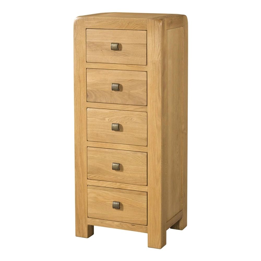 Perfect for bedrooms, hallways, or living spaces, the Curve Oak 5 Drawer Narrow Chest is both functional and stylish—offering a dependable storage solution that also enhances the look and feel of your home.