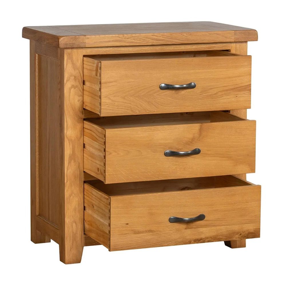 The Somer Oak 3 Drawer Small Chest is more than just a storage solution – it is a statement of quality, style, and functionality. Perfect for those who appreciate solid oak furniture and the warmth of natural wood, this piece will enhance your home for years to come.