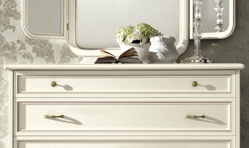 Item Code: 085SET.10BA New fan-shaped handles match the antique shading of drawer fronts corniches grooving.All drawers come with Blum soft-closing metal runners; internal parts are made with highly selected materials strictly Made in Italy. We introduce the new Bianco Antico finish for Nostalgia model. In this new finish the ash wood is treated, lacquered and made antique by hand following the best tradition of Italian furniture makers. The wood pattern becomes soft, elegant and velvet like thanks to a light lacquer coating. The antique contrast defines all solid wood corniches.This is a Made to Order itemAll Made to Order items are manufactured as per the order supplied by you.We are unable to accept cancellation or accept any extra cost that may incur due to wrong information provided by you at the time you placed the order.We will confirm all sizes/colours/finishes in written email (order confirmation) with you before going ahead with production of your order.