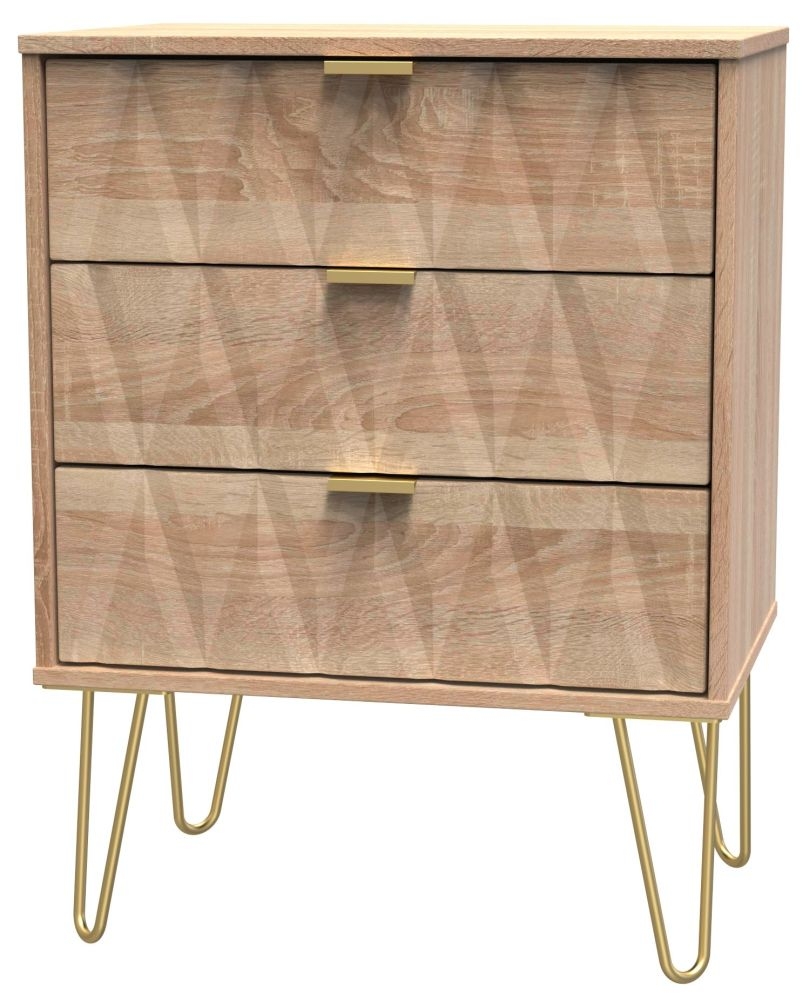Diamond Oak Effect 3 Drawer Midi Chest with Gold Hairpin Legs