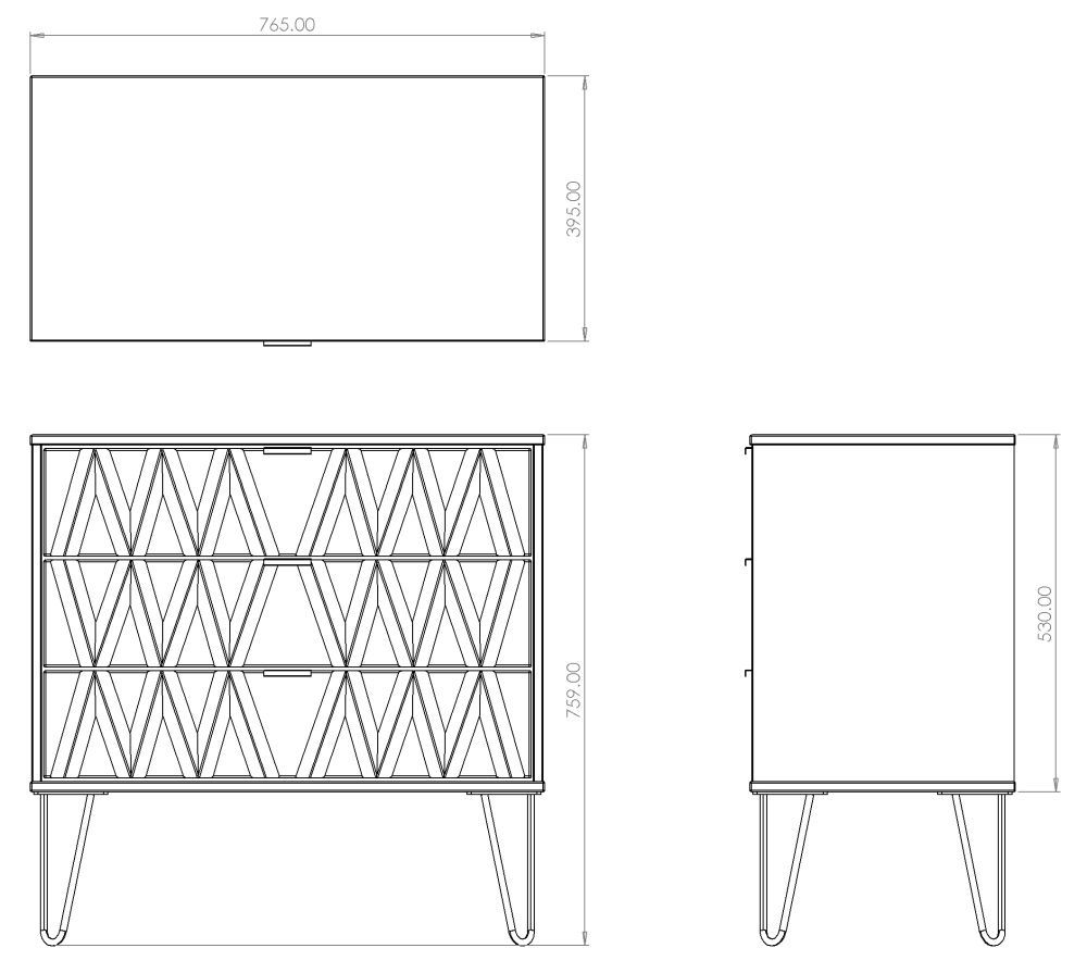 Diamond Oak Effect 3 Drawer Small Chest with Gold Hairpin Legs