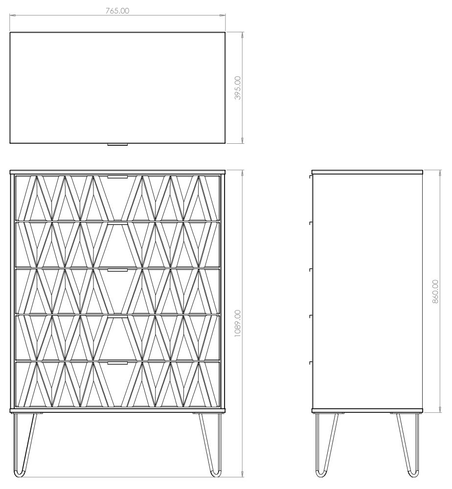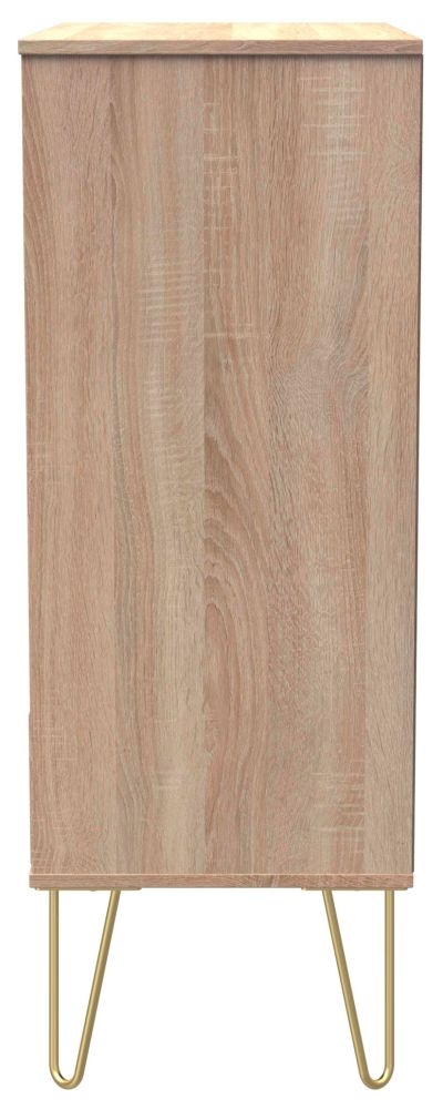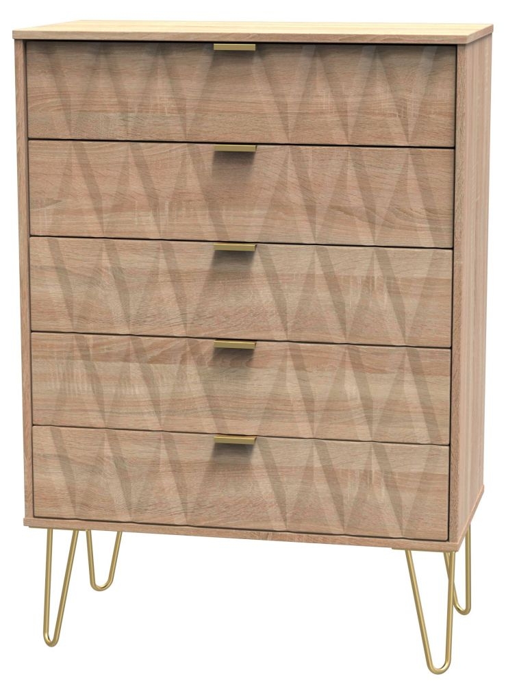 Diamond Oak Effect 5 Drawer Chest with Gold Hairpin Legs