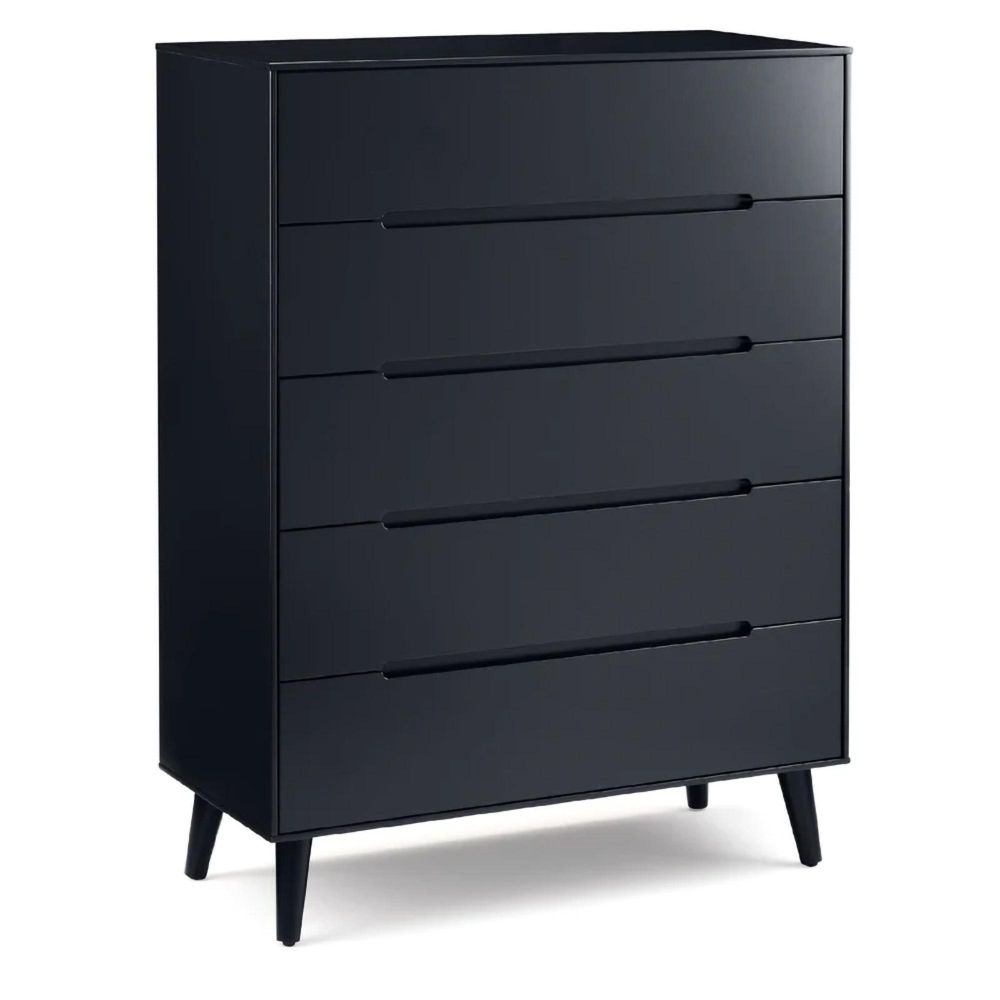 Item Code: ALI213 A stylish, retro-inspired chest with five large drawers in an immaculate matt anthracite lacquered finish, with complementary tapered black finish legs and recessed handles to provide easy opening. The sleek Scandinavian feel fits beautifully with any decor.