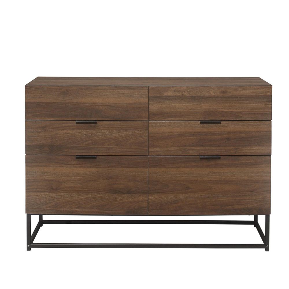 Item Code: HOS6CWAL Crafted from a mix of metal and walnut effect wood, the Houstons distinctive, modern style oozes sophistication inspired by modern architecture.The Houston 6 Drawer Chest is designed with four spacious drawers and is ideal for storing away any belongings.This versatile range is crafted from particle board with walnut effect finish.Care instructions: Wipe carefully with a soft, dry cloth.