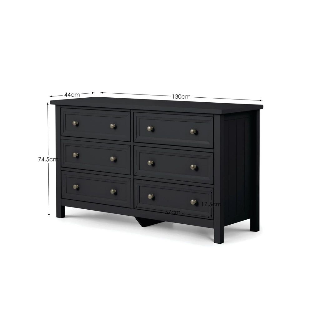 Maine Chest of Drawers - 6 Drawer - Wide - Black