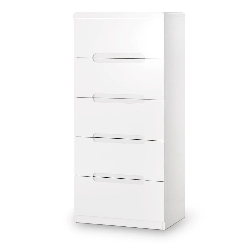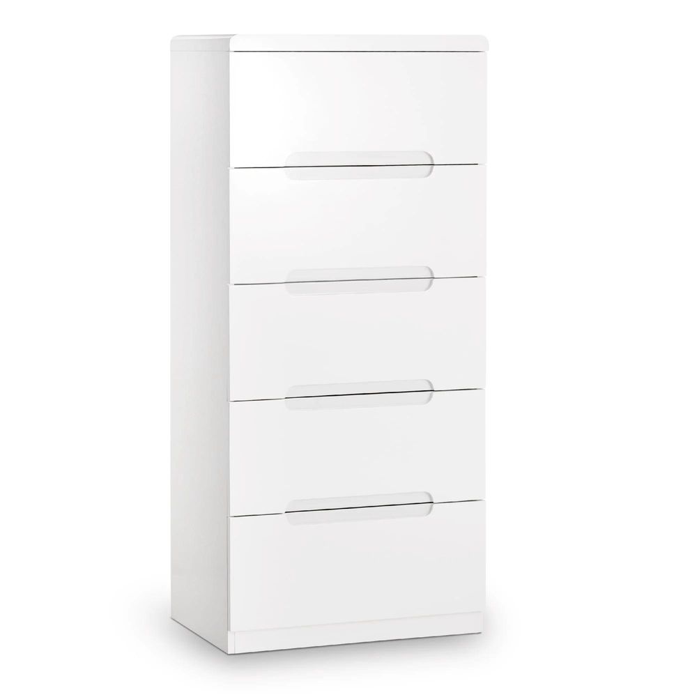 Manhattan Chest of Drawers - 5 Drawer - Narrow - White Gloss