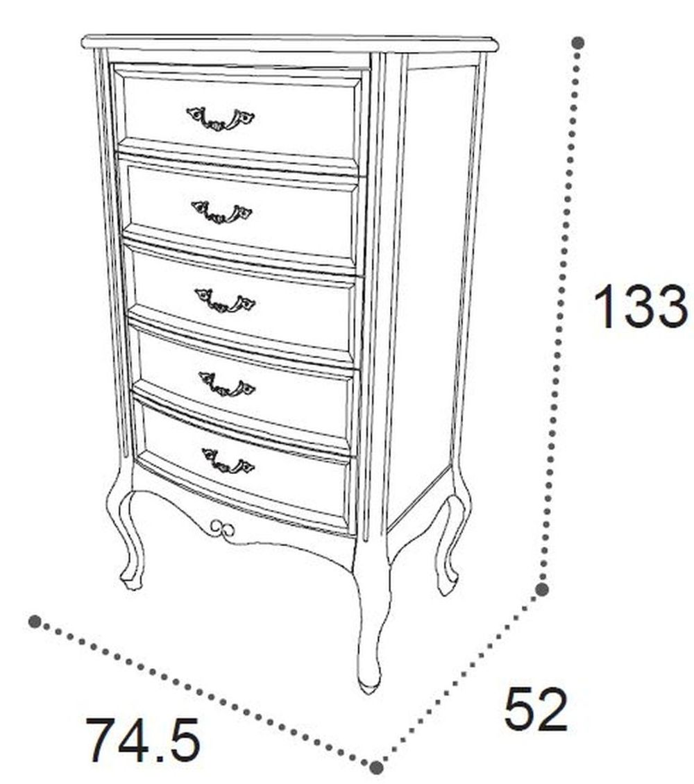 Item Code: 169SET.01NO Prices Shown for Single 5 Drawer Tall Chest.True solid wood carved and varnished according to the Italian tradition of the furniture artisan masters.Varnishing performed by a skilful and sensitive hand achieves chromatic solutions and complex antique shades which enhance the warmth and charm of a glamourous mansion. The typical gouge and the traditional woodwork chisel by which the Venetian artisan creates delicate and enchanting wood engravings. Bed VERDI with capitonne headboard in fabric Kr.5. On the left, elegant vanity dresser with pouf and mirror. The headoard in solid wood is cut, bent hand carved and hand varnished, patinated, brushed and antique made. Both sides and bottom drawers are in birch wood to guarantee solidity and weight resistance.This is a Made to Order itemAll Made to Order items are manufactured as per the order supplied by you.We are unable to accept cancellation or accept any extra cost that may incur due to wrong information provided by you at the time you placed the order.We will confirm all sizes/colours/finishes in written email (order confirmation) with you before going ahead with production of your order.