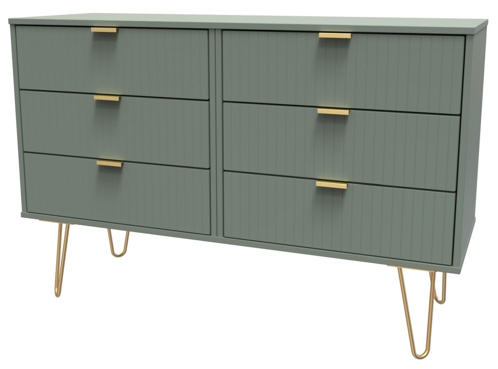 Linear Green 6 Drawer Midi Chest with Gold Hairpin Legs