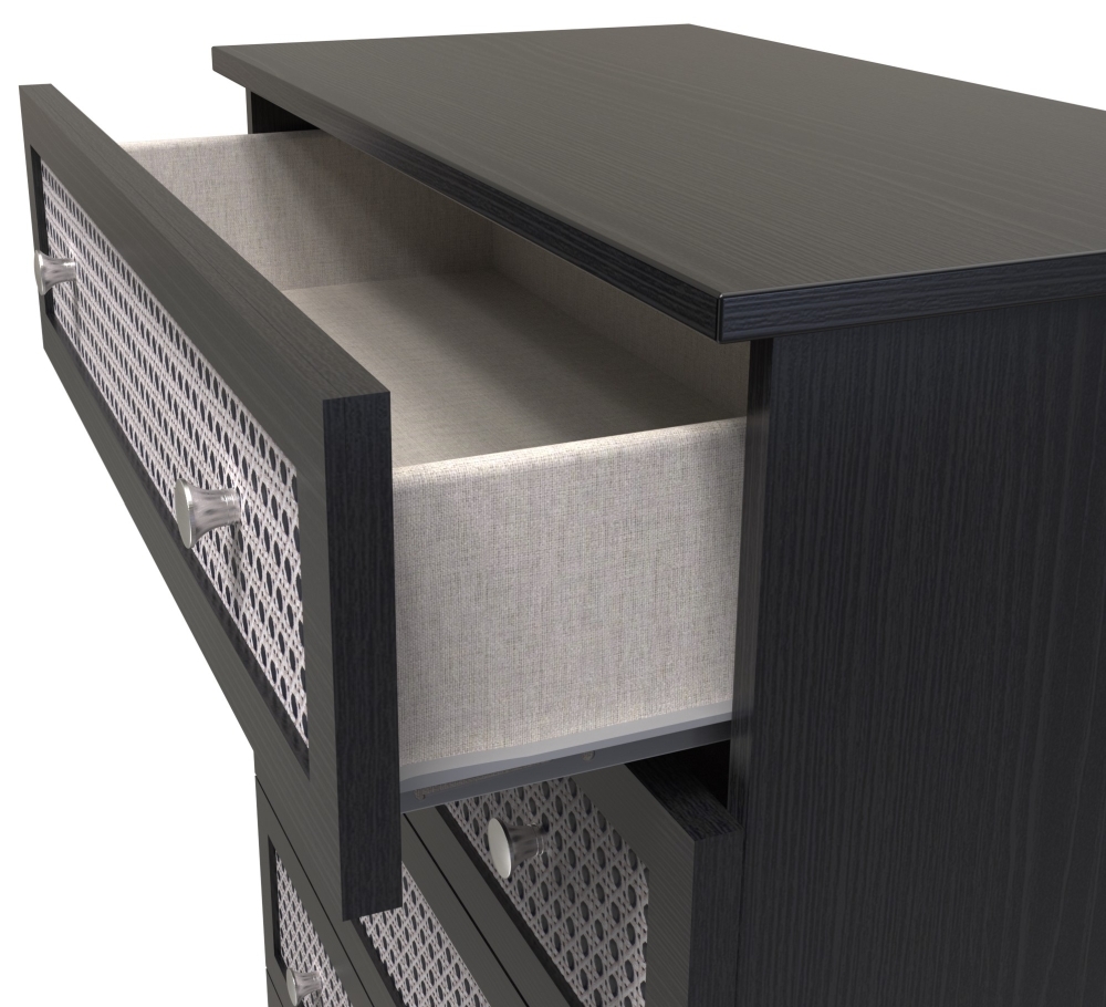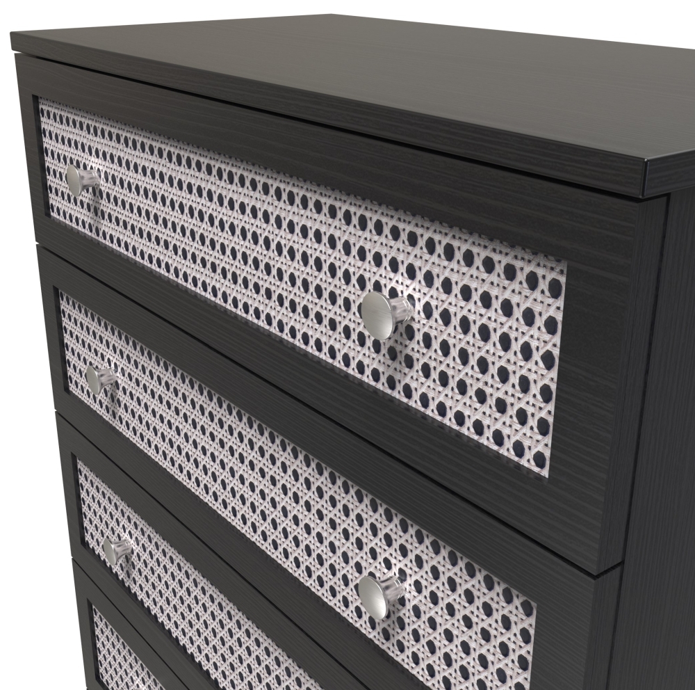 Rattan and Black Ash 5 Drawer Chest