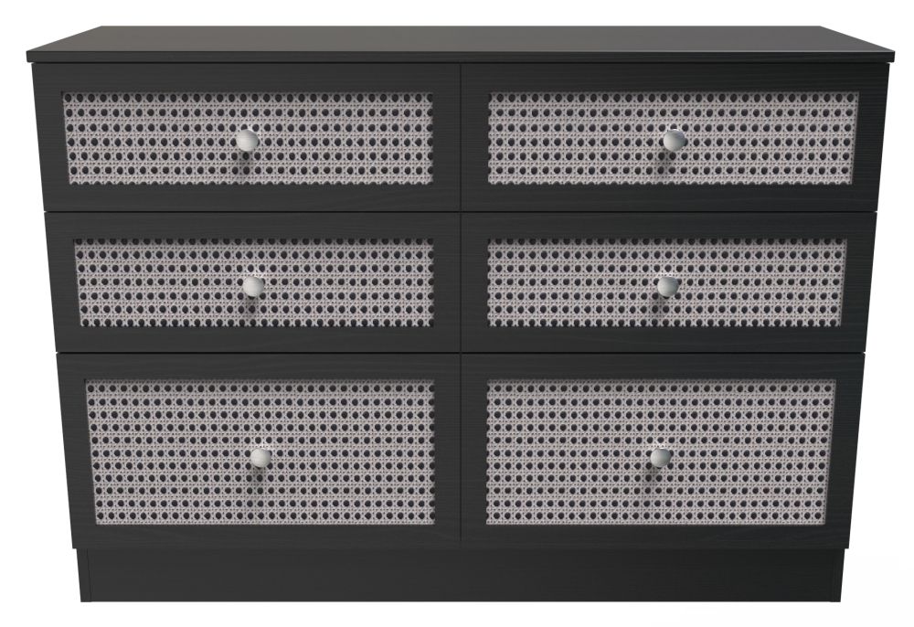 Item Code: RAT015B This attractive midi chest adds style and storage to any room. Featuring 6 drawers, it is made of black ash-finished Rattan and particle wood for a classic look. Ideal for keeping clothes, jewellery and other accessories at hand, it will instantly create an organised, clutter-free space. Stylish and convenient.