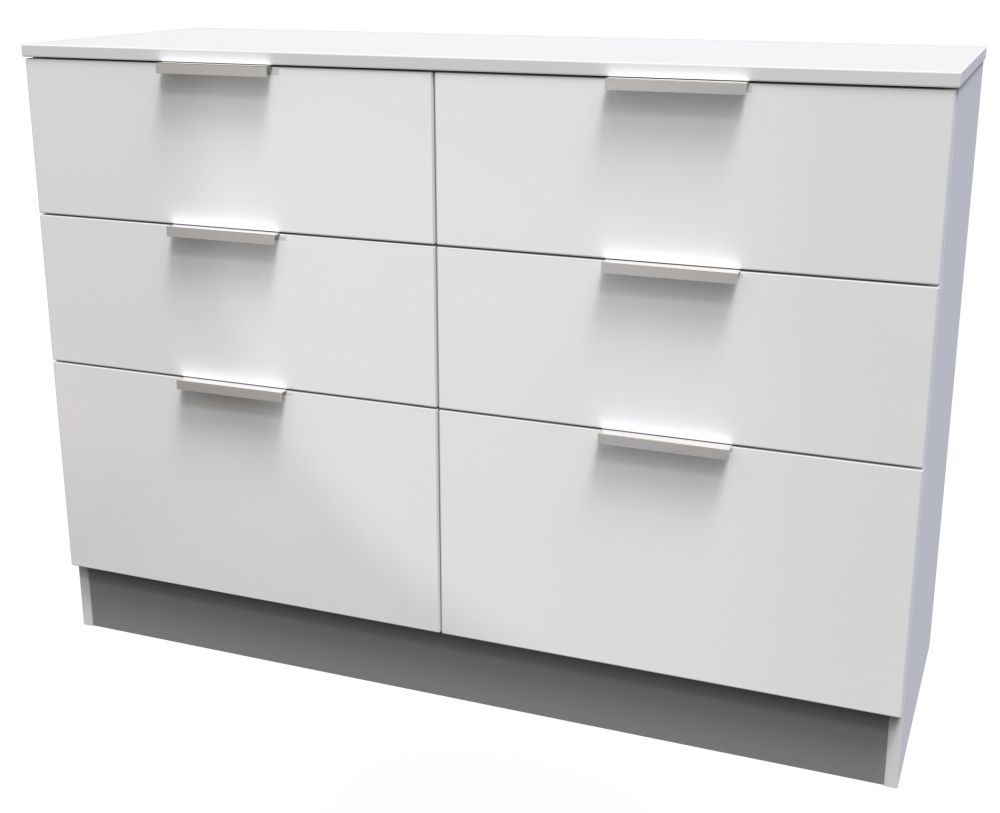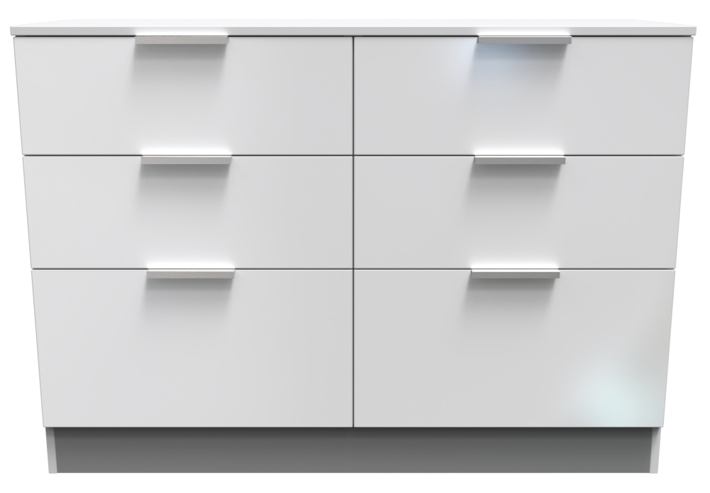 Item Code: PLY015 Enjoy easy organization and storage with this wide midi chest. It features 6 drawers to accommodate your clothing, bedding, books or other items. Crafted from particle wood, it is finished in high-gloss white and comes assembled for your convenience. The drawers are spacious and offer plenty of storage space in a contemporary style.
