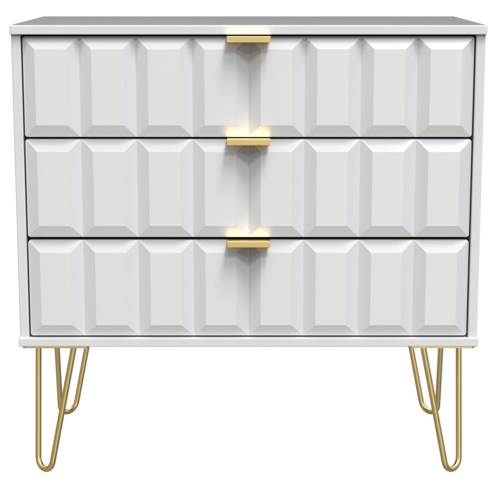 Cube White 3 Drawer Small Chest with Gold Hairpin Legs