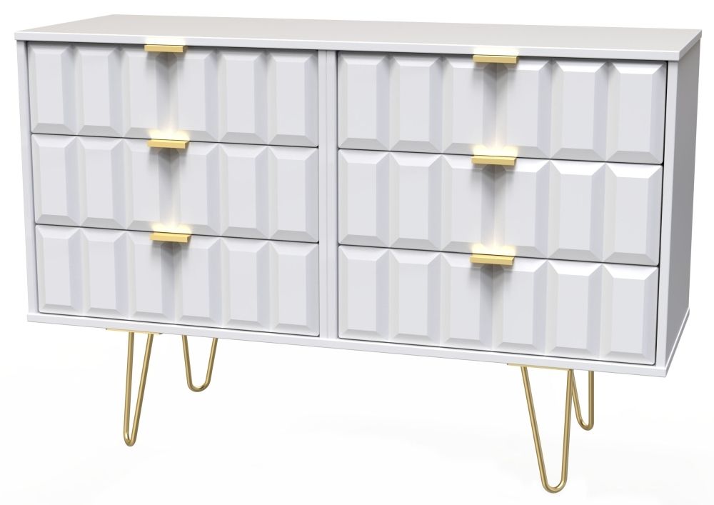 Cube White 6 Drawer Midi Chest with Gold Hairpin Legs
