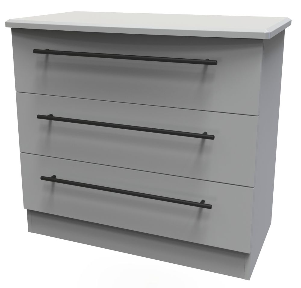 Item Code: BEV010DG This classic 3 drawer chest will make a great addition to any room. Boasting bold dusk grey finish, this stylish chest is made of a durable particle wood. It comes ready to use with no assembly required and offers ample storage space for all your items. Perfect for storing clothes, toys, electronics or decorative items. Add charm and efficiency to any room with this wide chest.