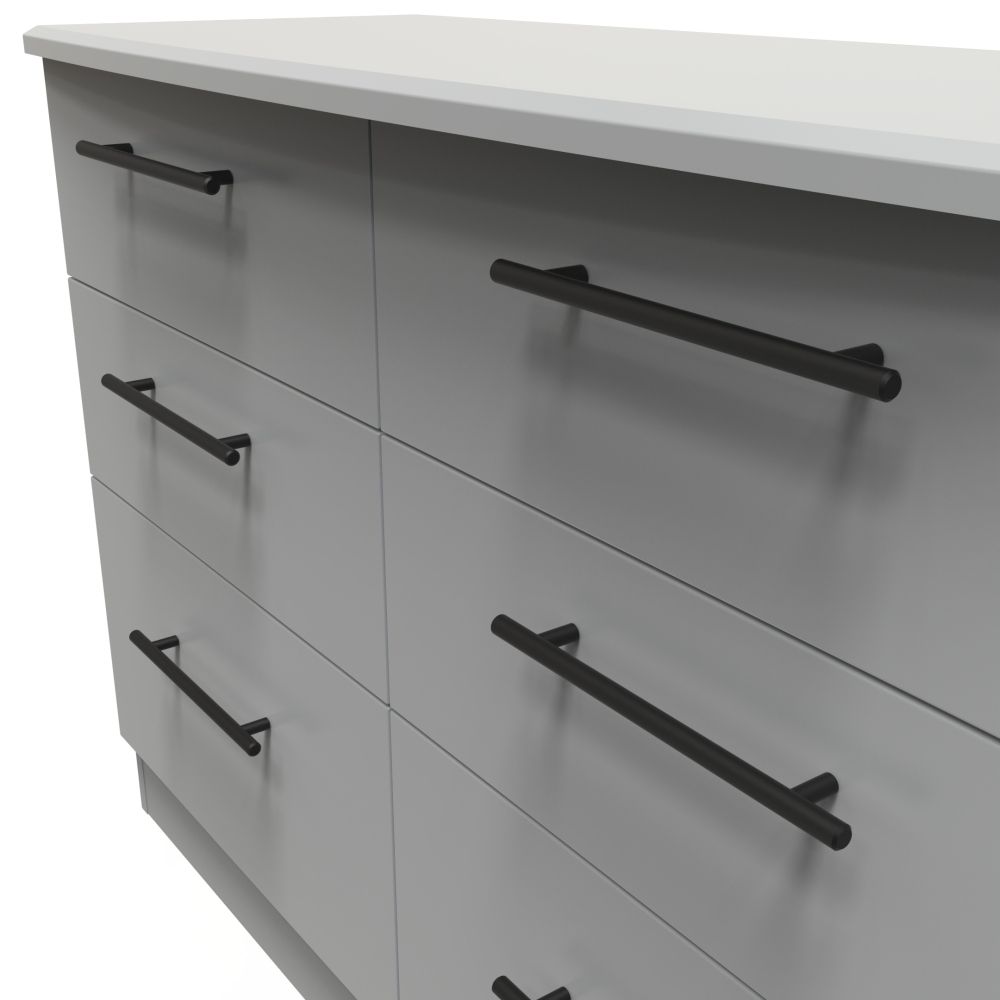 Item Code: BEV015DG This wide midi chest features 6 drawers with an elegant dusk grey finish, perfect for adding a touch of sophistication to any bedroom. Expertly crafted with high quality particle wood, it's designed to last and provides ample storage space. Enjoy an easy and hassle-free assembly that will sit proudly in the bedroom.