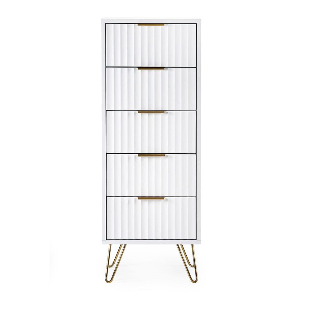 Murano Chest of Drawers - 5 Drawer - Narrow - Ribbed - White