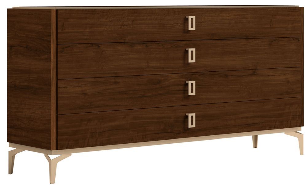 Modern Eva Dresser - 4 Drawer - Walnut with Gold Trim