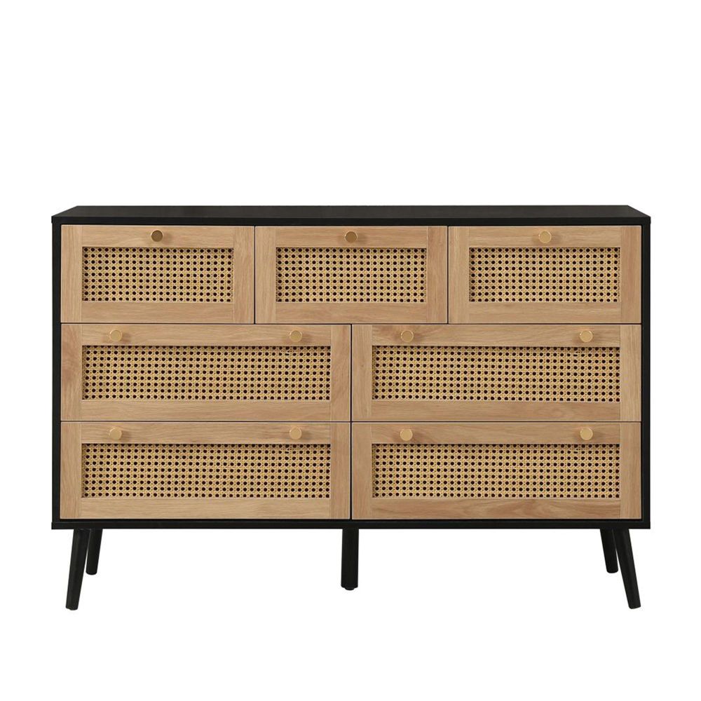 Croxley Wide Chest - 7 Drawer - Black and Rattan