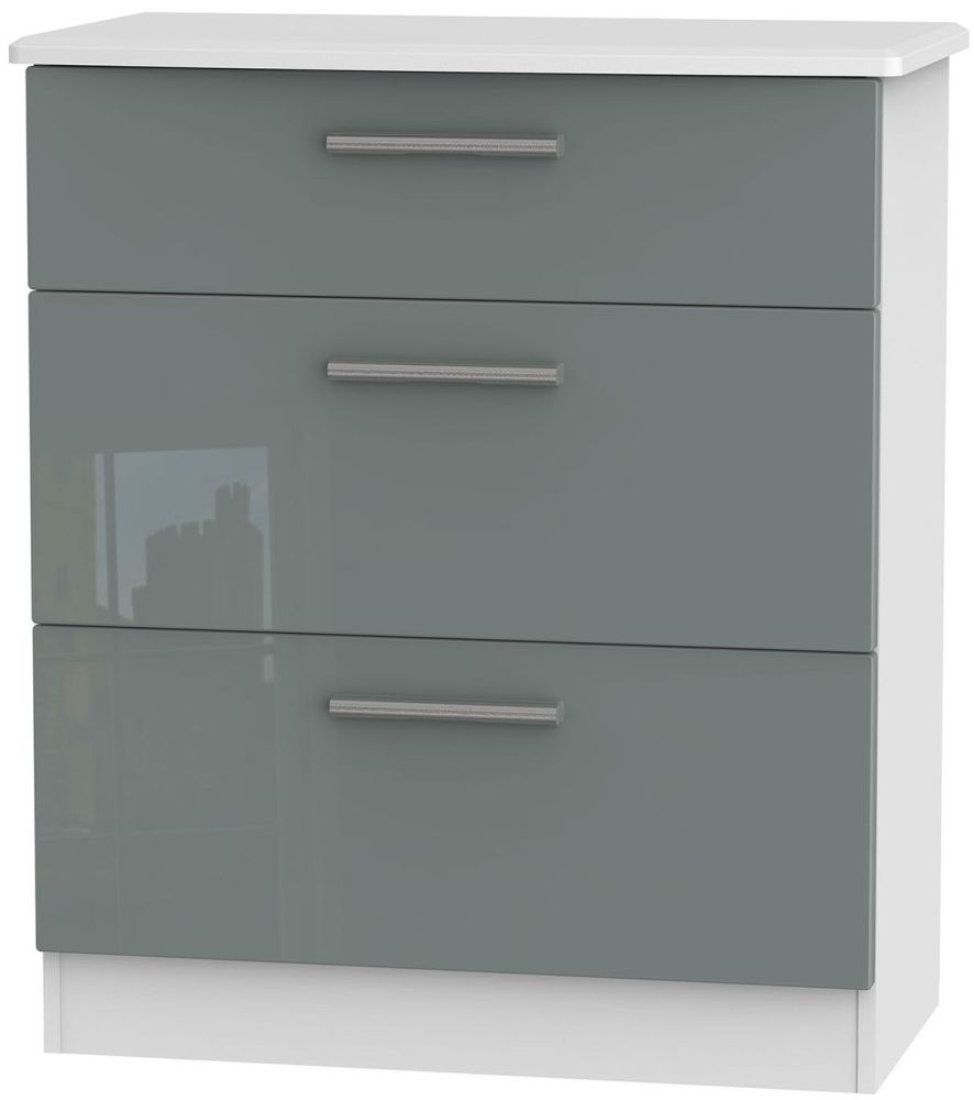 Knightsbridge Grey Gloss and White 3 Drawer Deep Chest