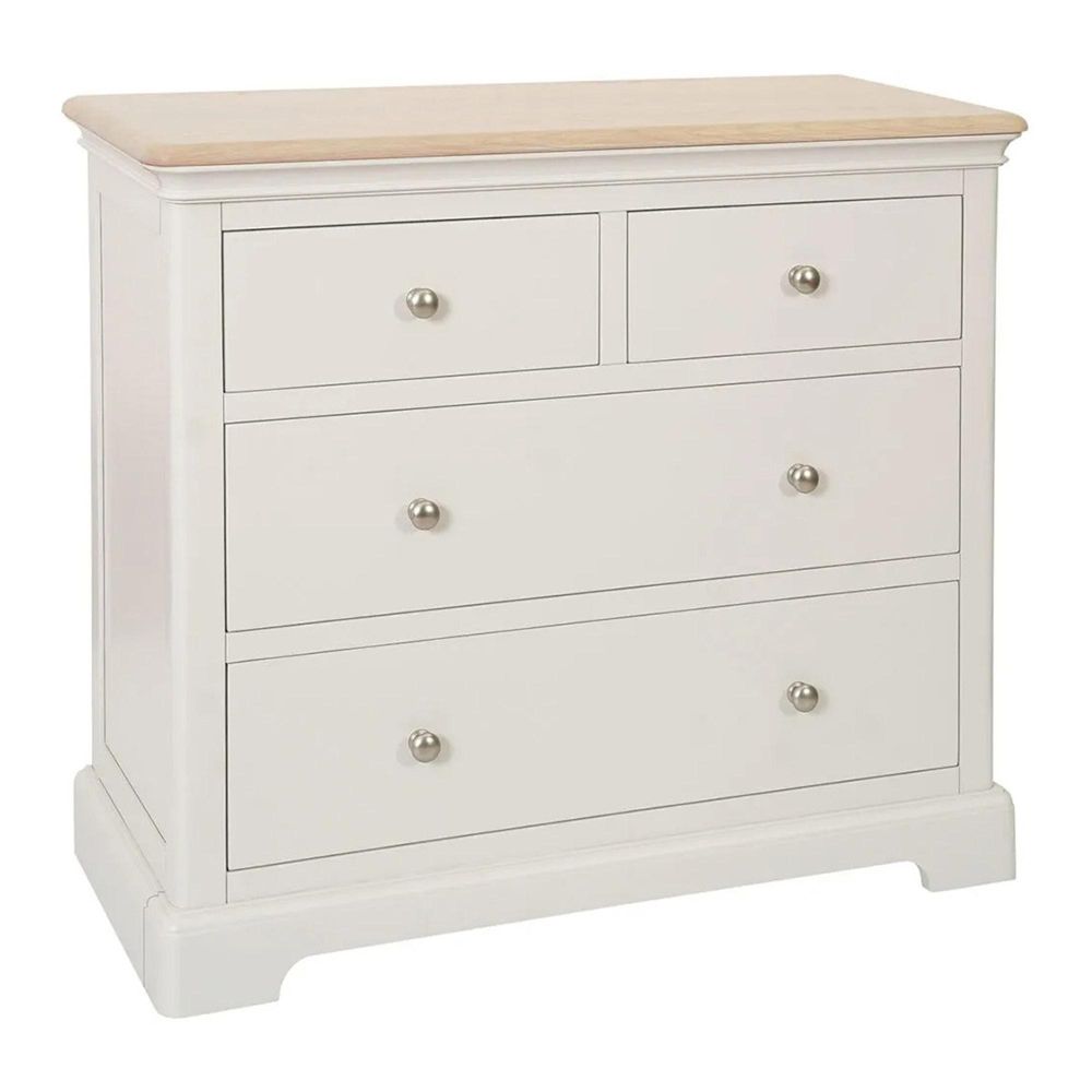 The Cromwell Grey Painted 2+2 Drawer Chest is designed to offer generous storage while bringing a touch of understated elegance to your bedroom. With two smaller top drawers and two full-width lower drawers, it provides a versatile solution for neatly organising clothing, accessories, and everyday essentials.
