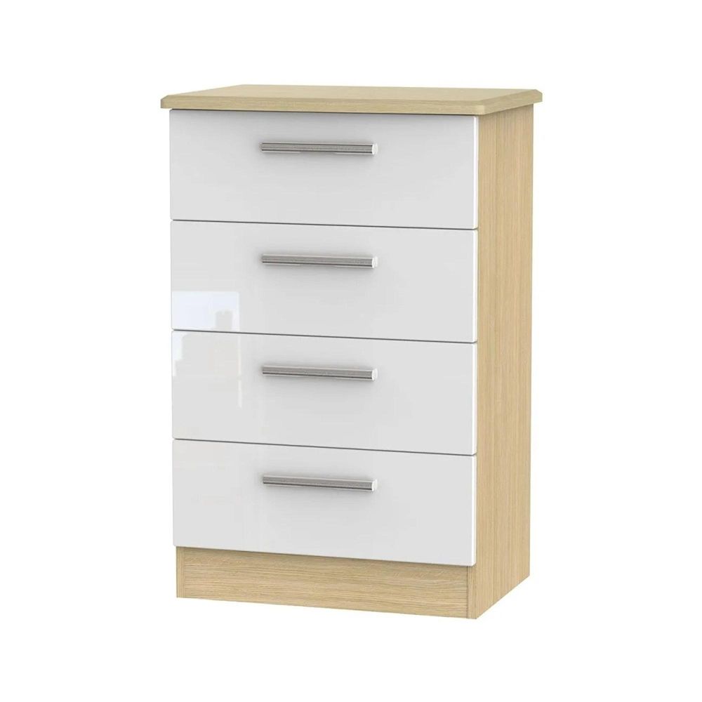 Knightsbridge White Gloss and Light Oak 4 Drawer Midi Chest
