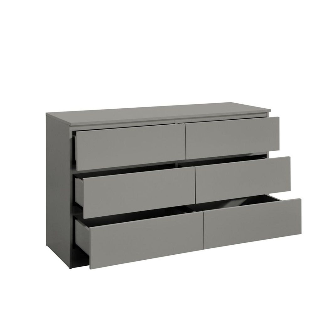 Item Code: OSL6DCHGRY This chest provides the perfect contemporary storage solution for any space. Featuring 6 drawers with matching metal hardware, in a stylish grey finish. Durable particle board construction and runner rails makes for a strong and sturdy addition to any bedroom, living space or hallway.